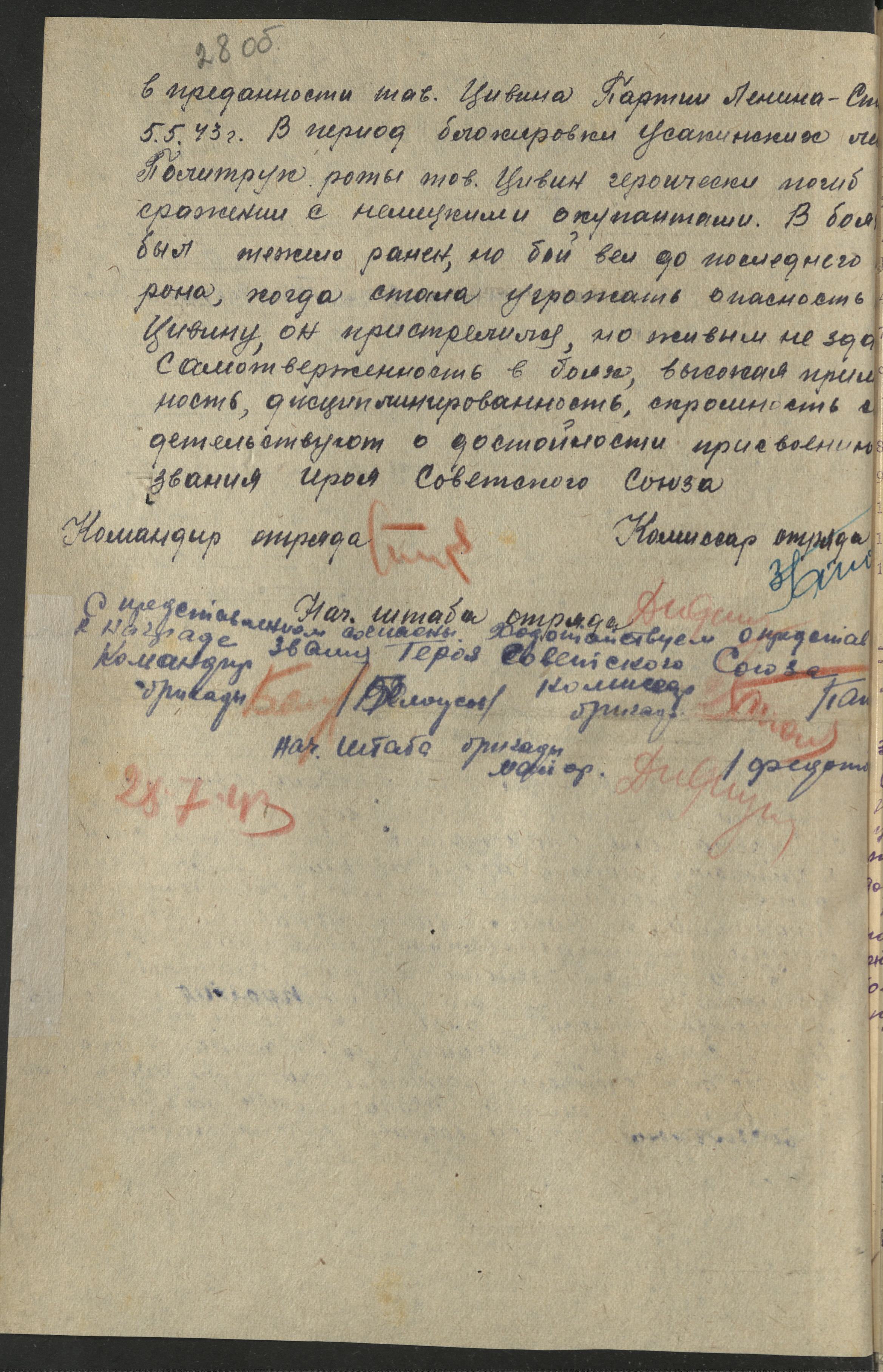 4. ЛИЧНАЯ СТРАНИЦА партизана, лейтенанта ЦИВИНА Г.А., подготовлена:
