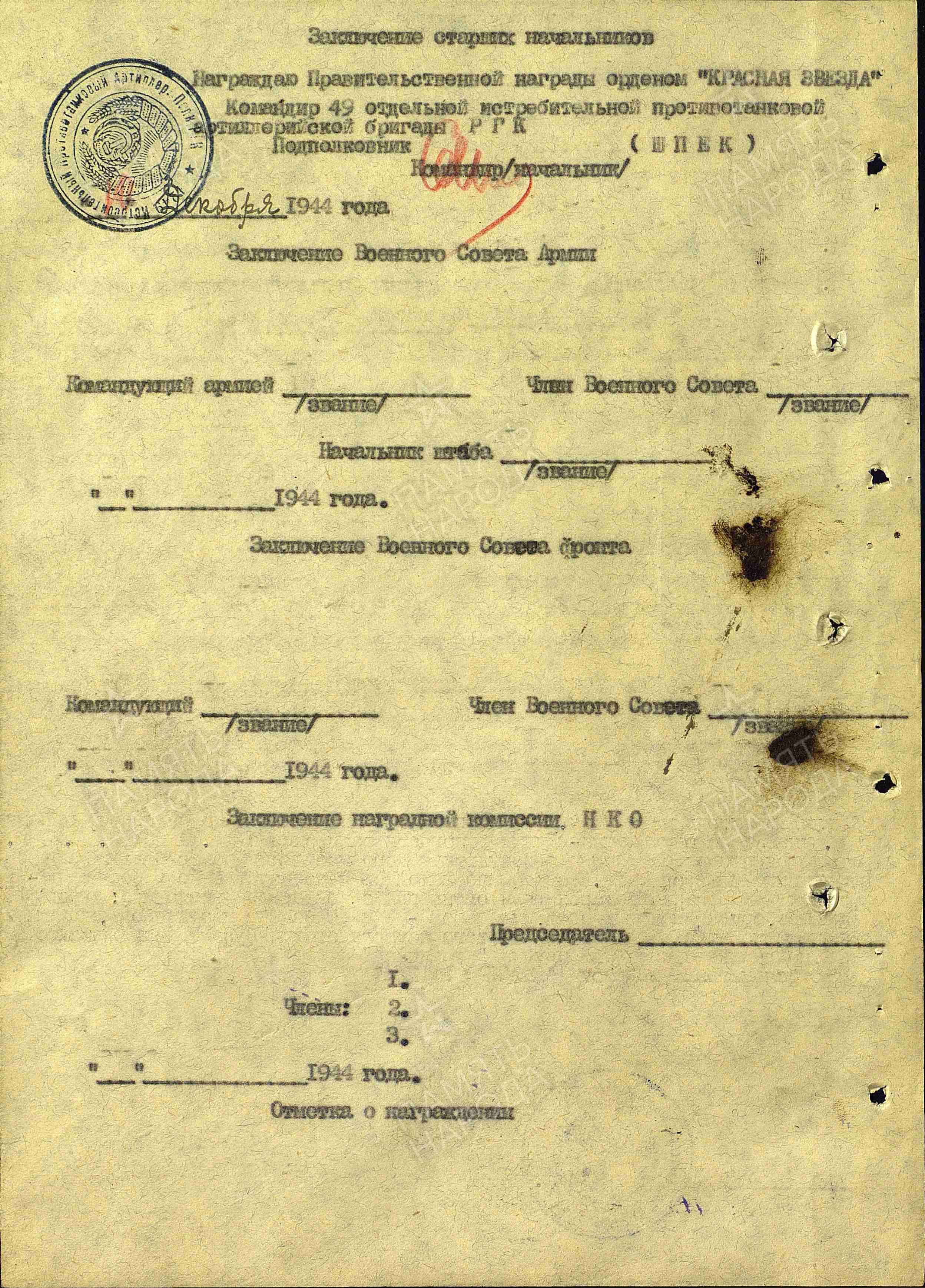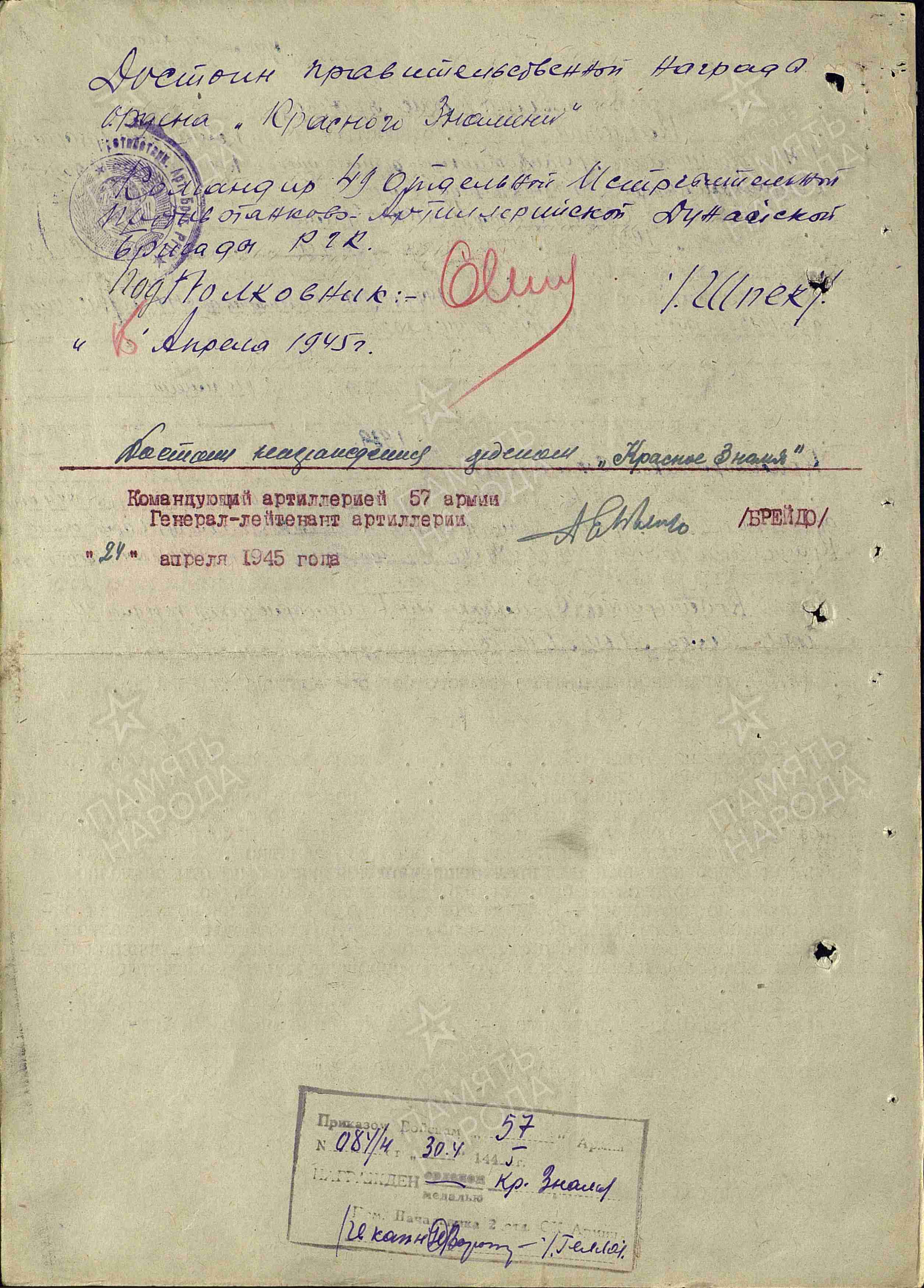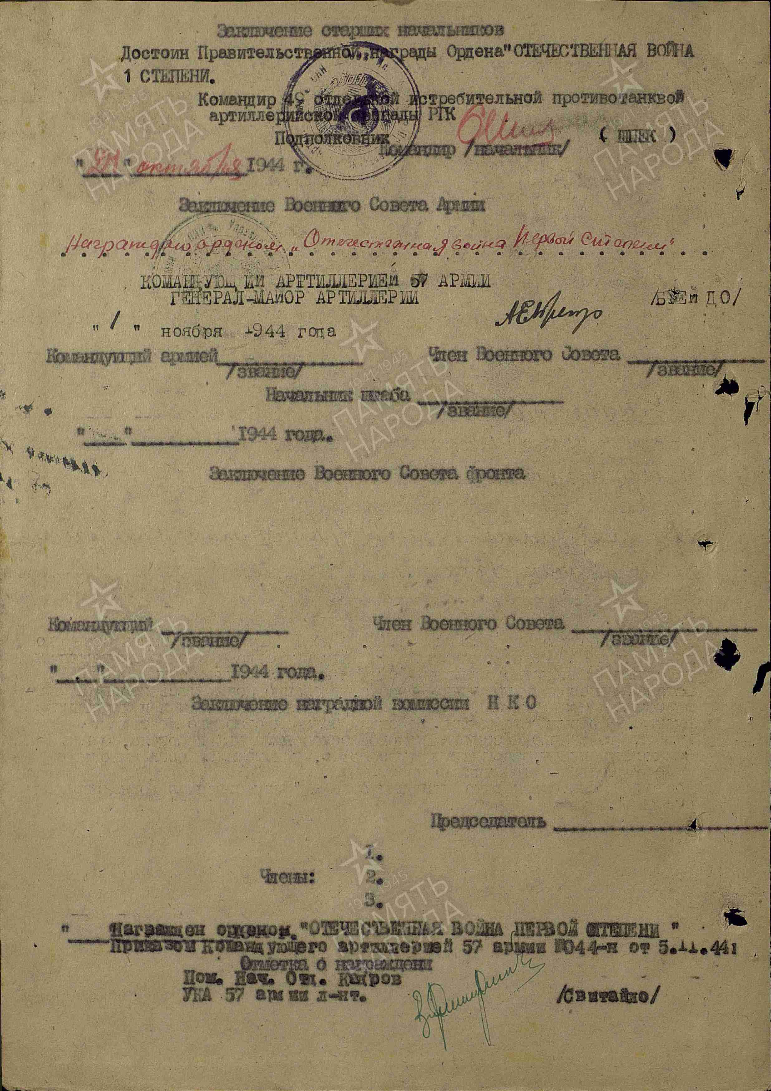 | 05.11.1944 | Орден Отечественной войны I степени |