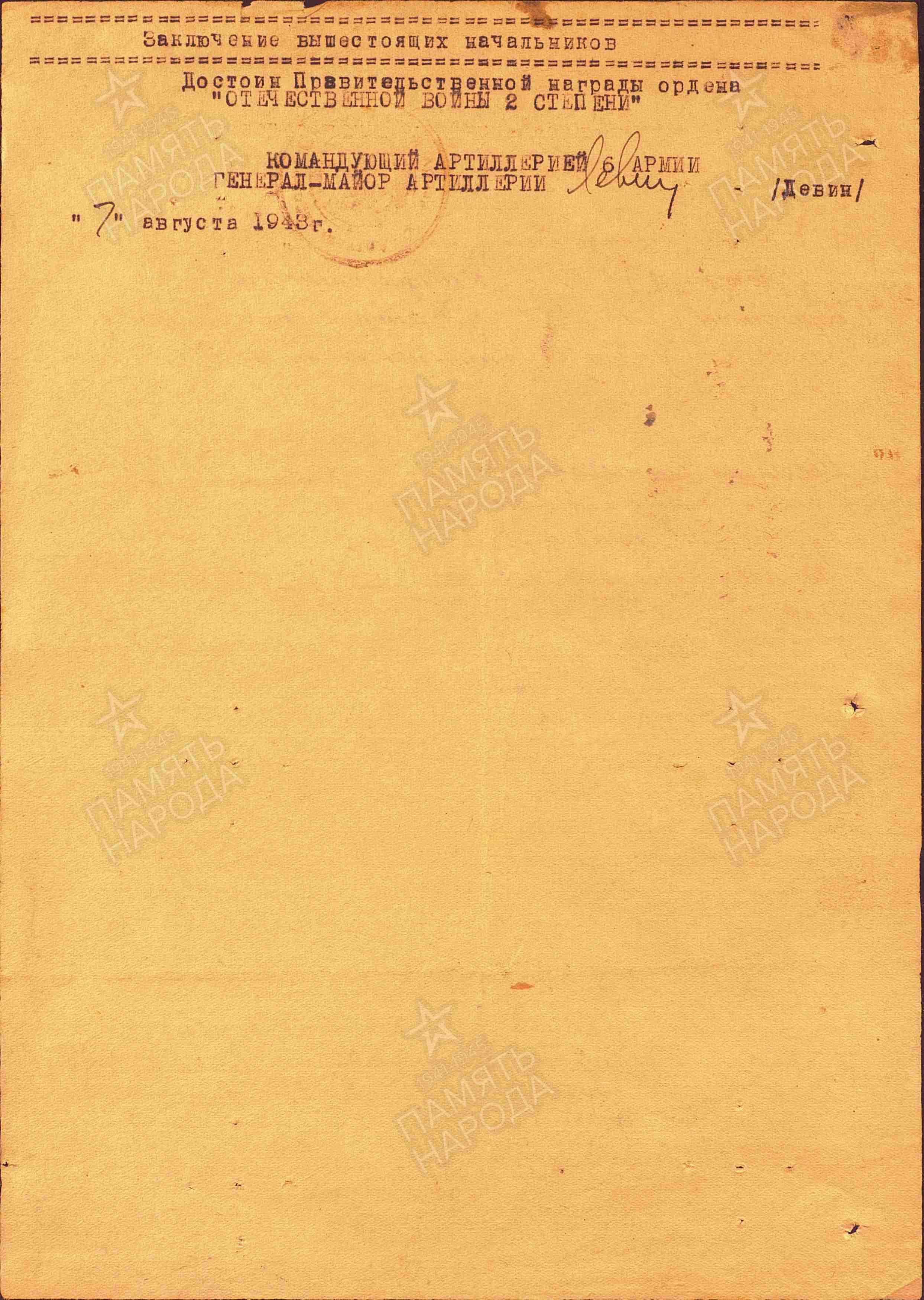 | 28.08.1943 | Орден Отечественной войны II степени |