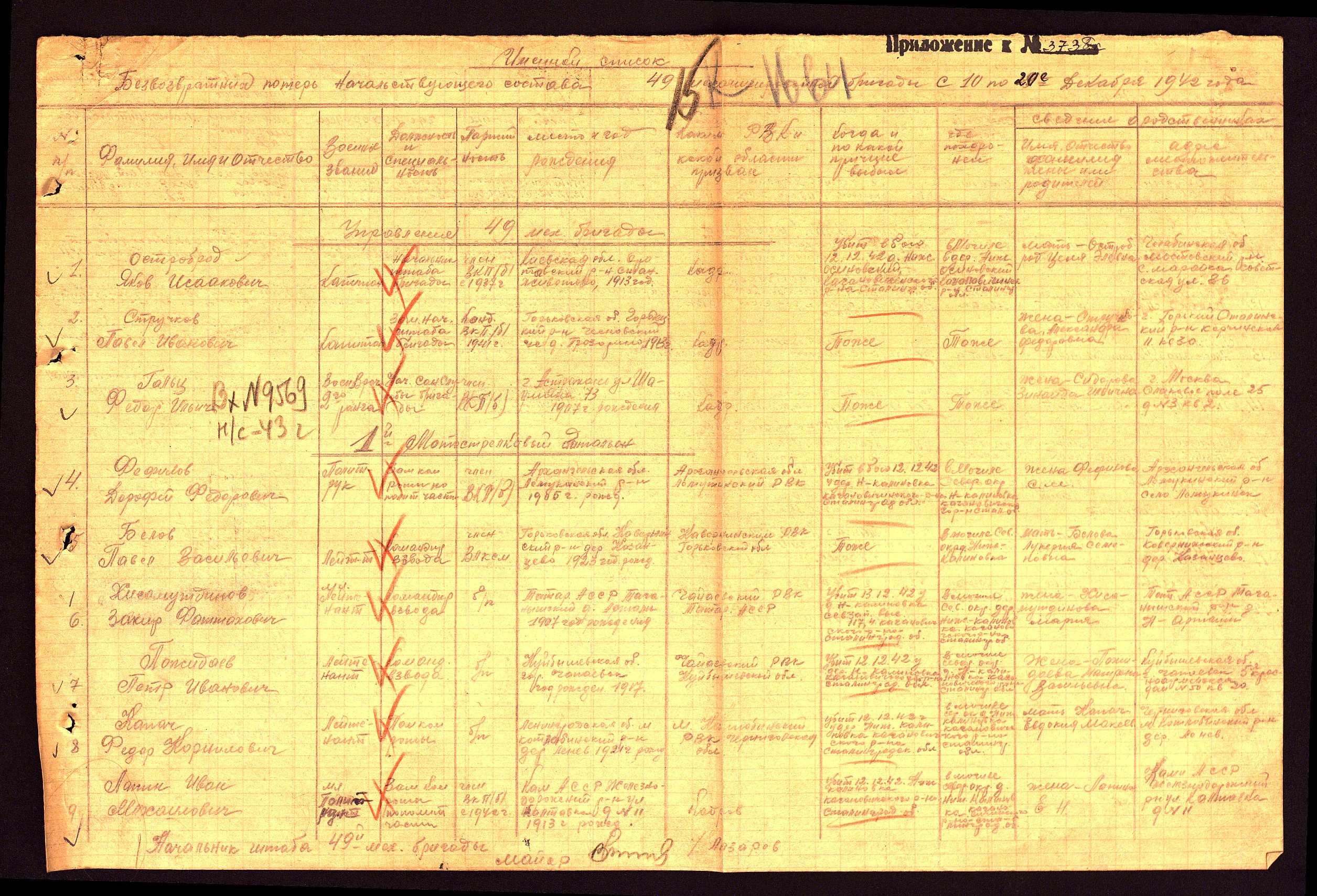 ... В первой половине дня в результате налета авиации противника на командный пункт бригады убито и ранено до 20 чел. прямым попаданием бомбы в блиндаж. В числе убитых нач. штаба бригады капитан ОСТРОБРОД и нач. санбриг военврач II ранга ГОЛЬЦ.