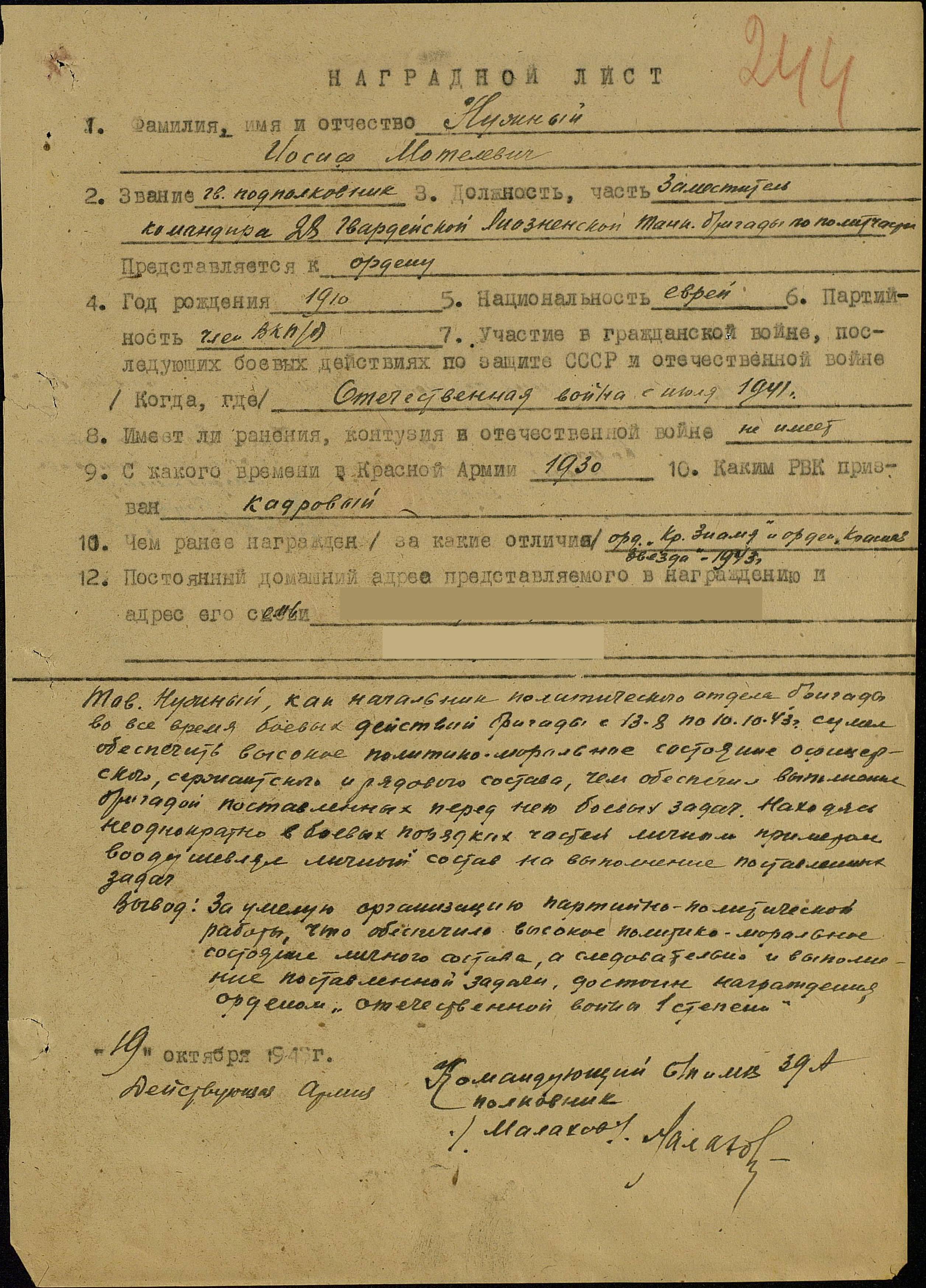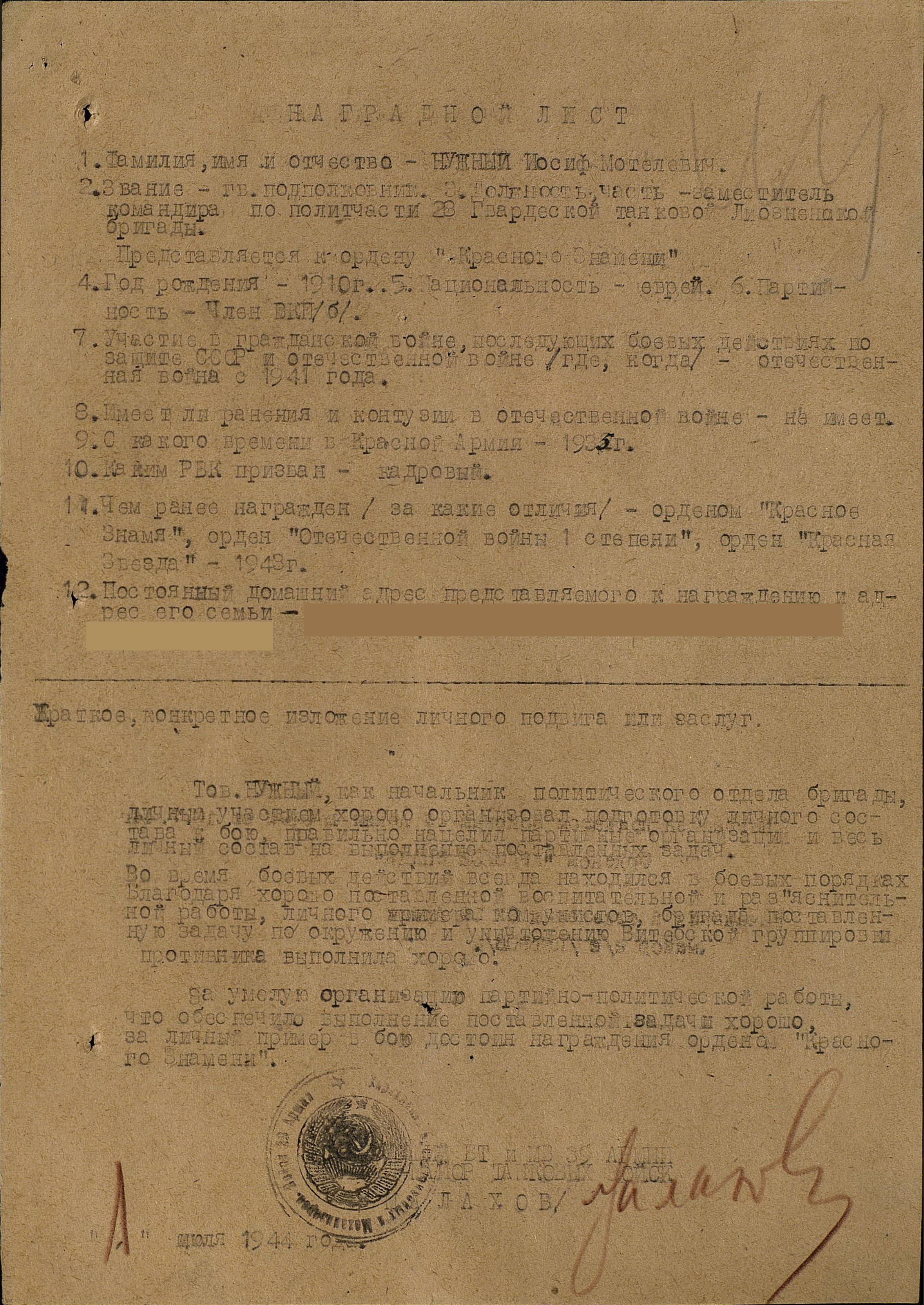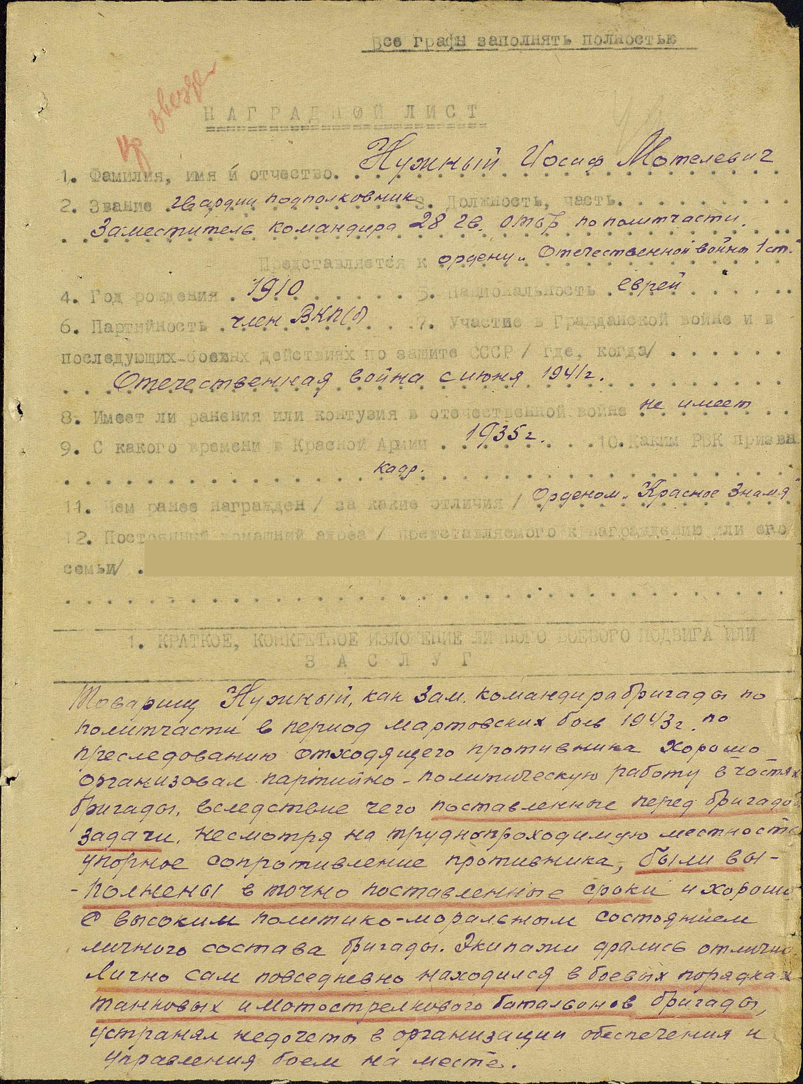 ЛИЧНАЯ СТРАНИЦА гвардии подполковника НУЖНОГО И. М.: