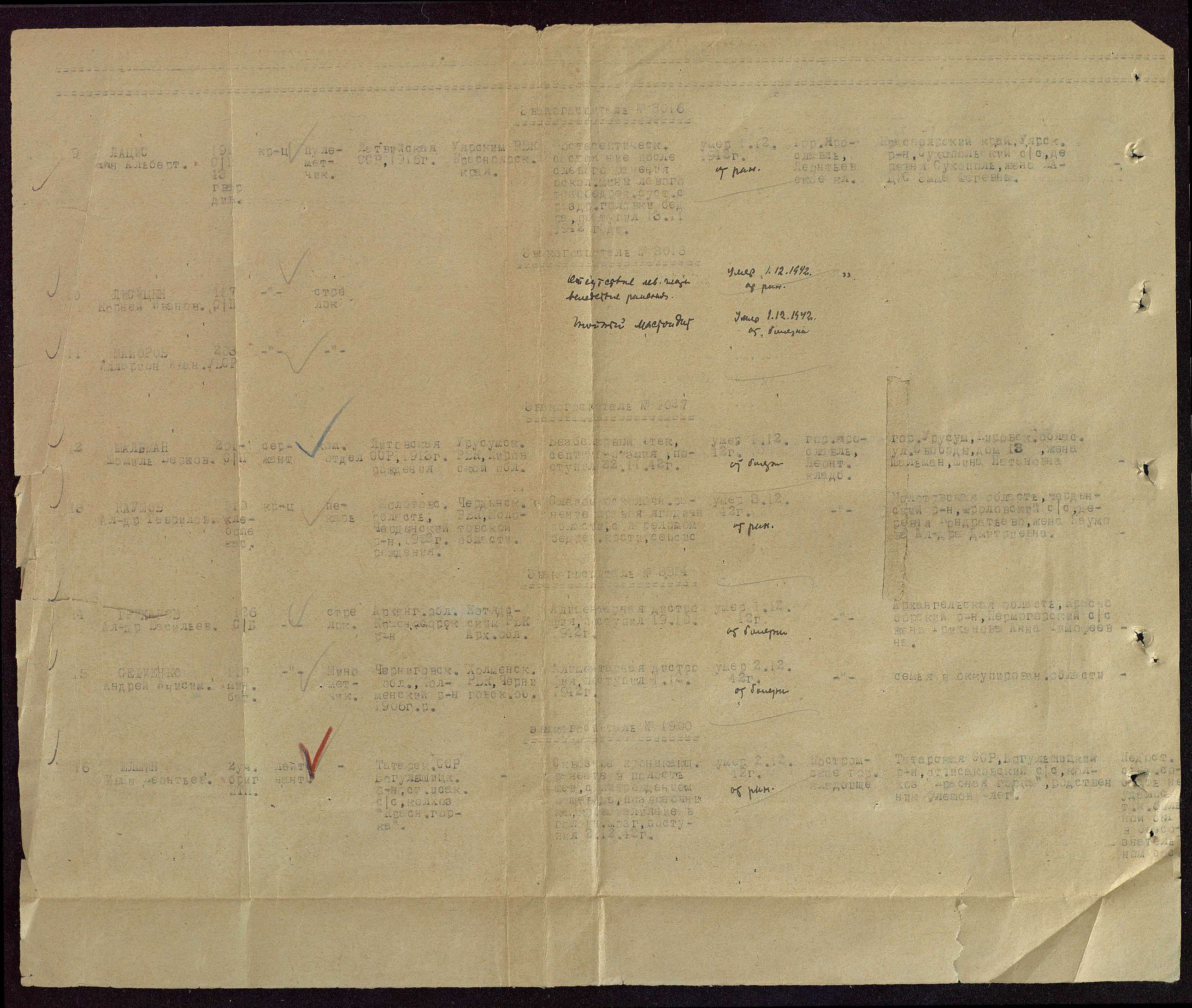 Сержант ШАЛЬМАН ШМУЛЬ(ШАМИЛЬ) БЕРКОВИЧ, 1913 года рождения, место прождения - Литва. В РККА призван в 1941 году Уржумским РВК, Кировской области. На фронте Великой Отечественной - Стрелок 201 отдельной стрелковой бригады, Юго-Западного фронта. Ранения: нет. Боевые награды: нет. 22.11.1942 года, направлен в ЭГ( эвакуационный госпиталь) 1037. Диагноз, при поступлении:" Безбелковый отёк. Септикопиемия". Умер, от болезни( голодания, прим Г.Ч.) 01.12. 1942 года. Извещение: Уржумский ГВК, Кировская область, г. Уржум, ул. Свободы, дом 13, жена - Шальман Минна Натановна. Захоронен: г. Ярославль, Леонтьевское кладбище. Вечная Слава и Память!