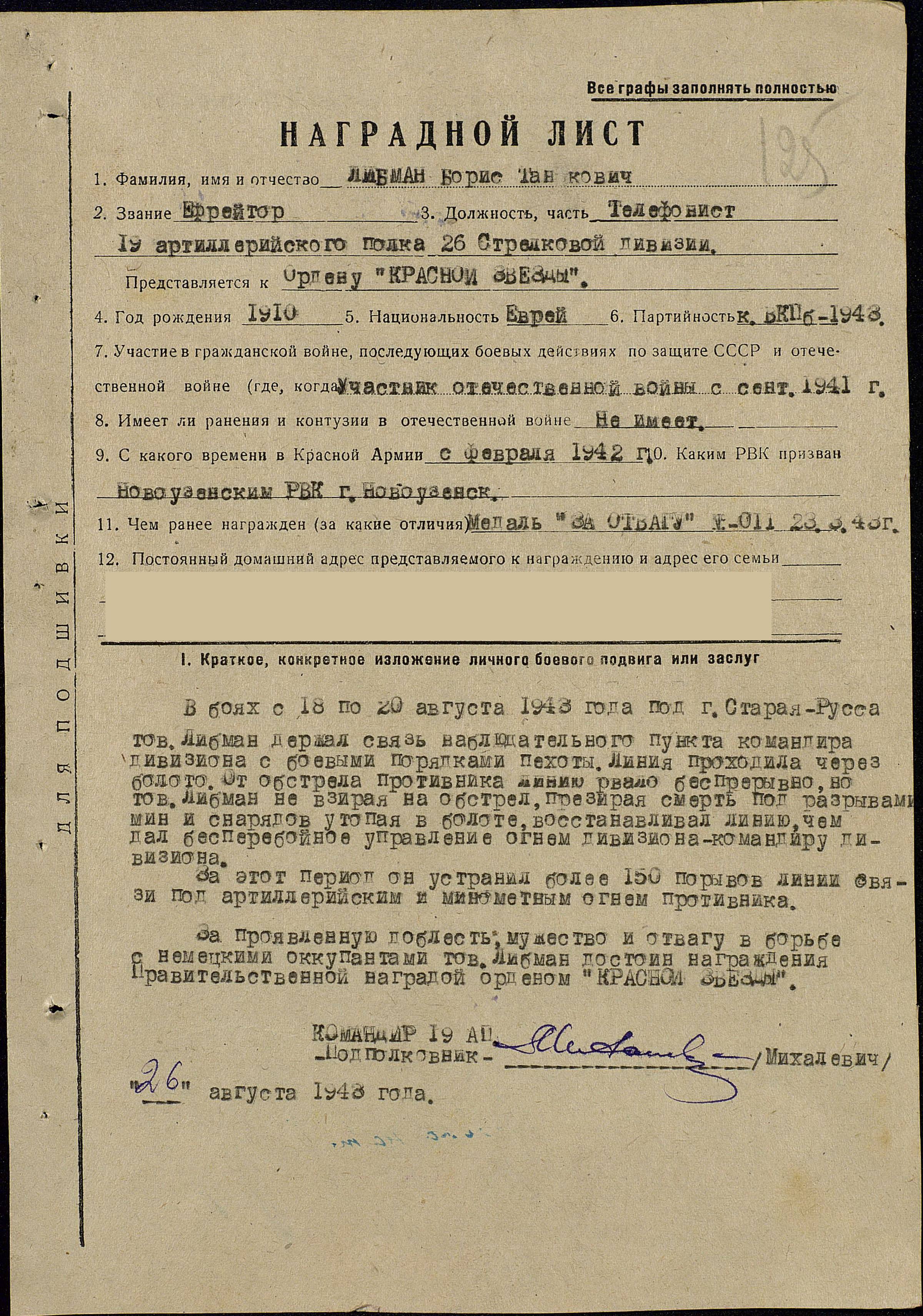 телефонист управления дивизионом  19-го Красноярского артиллерийского  полка, 26-й стрелковой дивизии