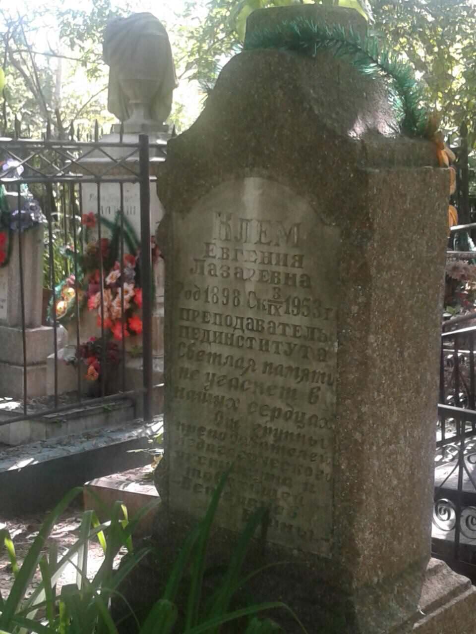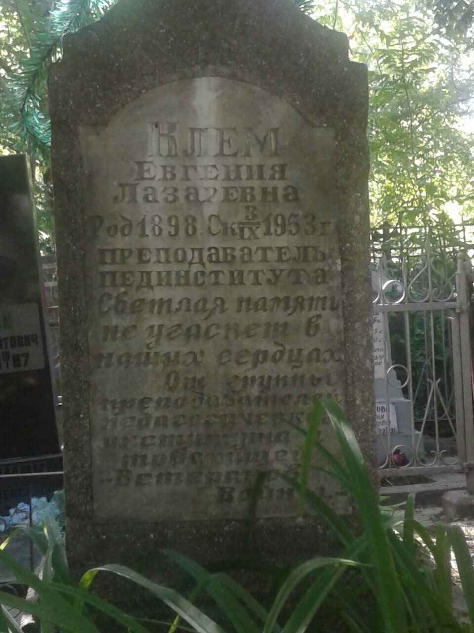 Рядовая КЛЕМ ЕВГЕНИЯ ЛАЗАРЕВНА, 1898 года рождения, родилась - Российская Империя, г. Одесса, еврейка. После окончания школы и педагогического института, работала учительницей, а затем преподавателем истории, на кафедре "Истории", Одесского педагогического института. На фронт Отечественной войны, призвана в 1941 году, Одесским ГВК - переводчица Приморской Армии.