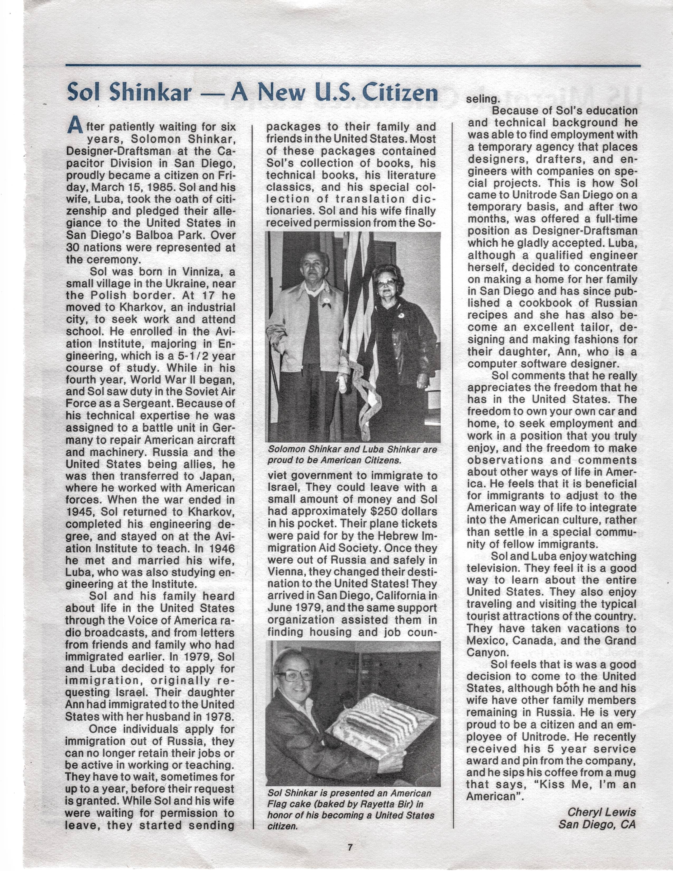 Соломона, к сожалению, уже нет с нами, а его жена и дочь живут в Калифорнии.