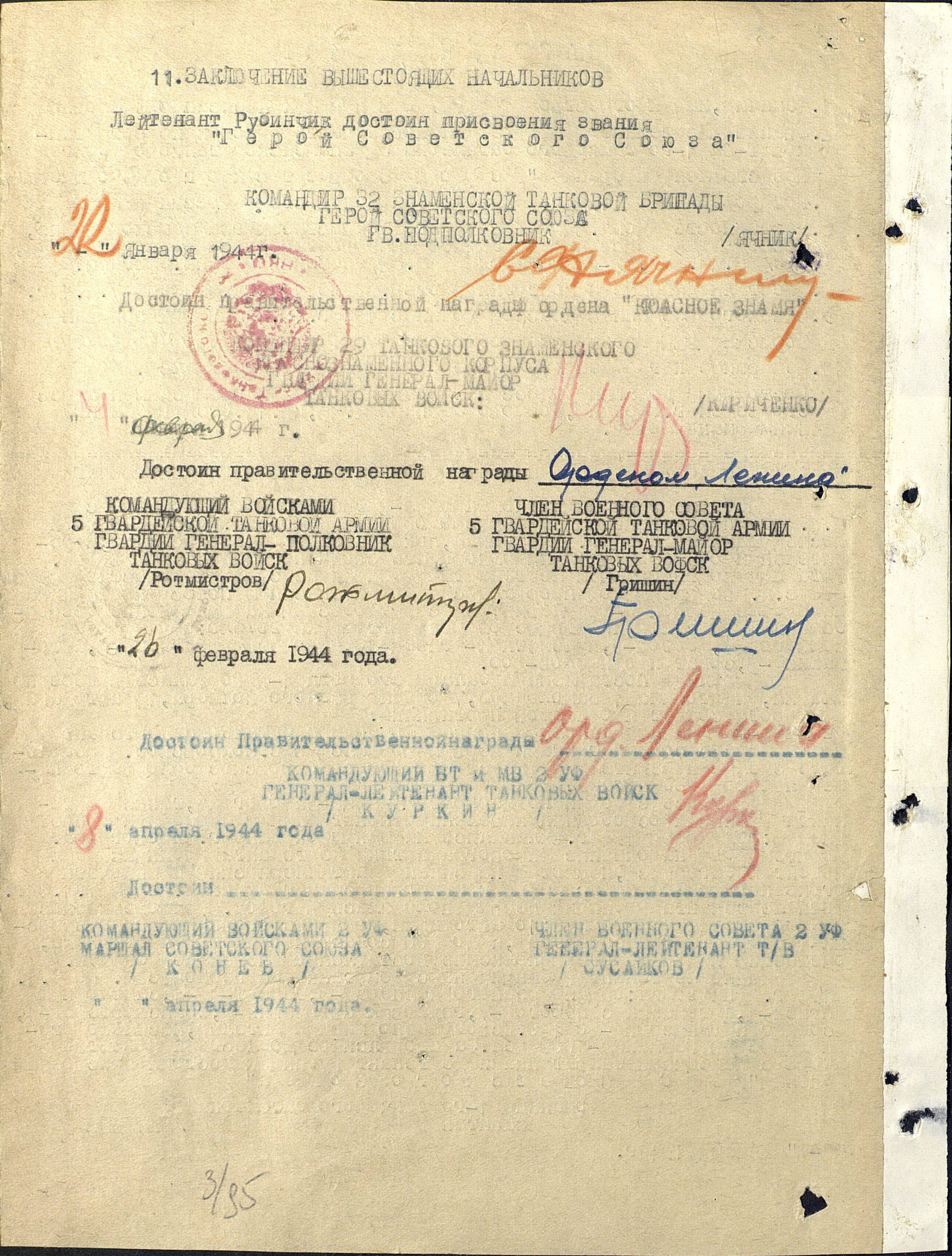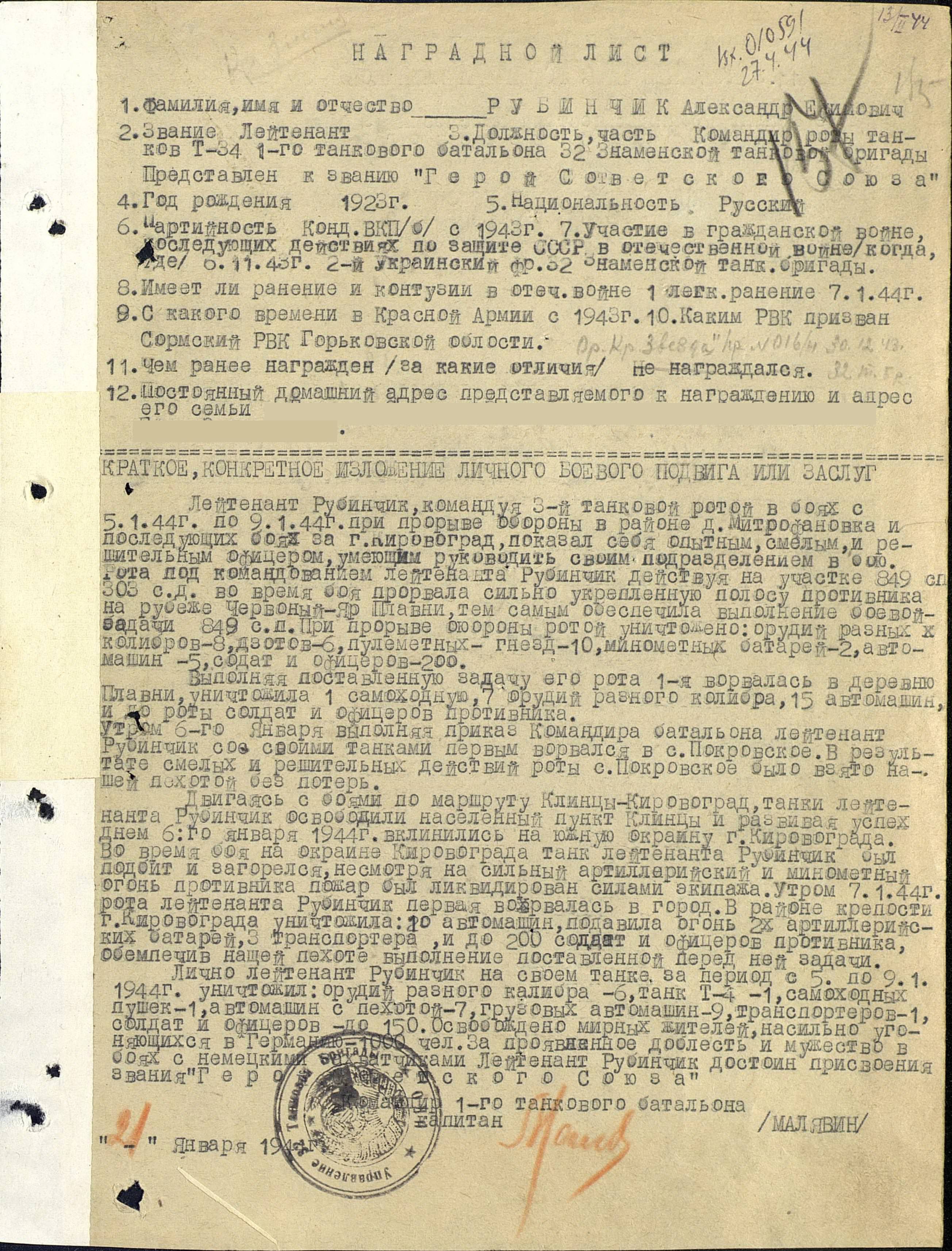 командир танковой  роты 32-ой  Знаменской танковой бригады 1944