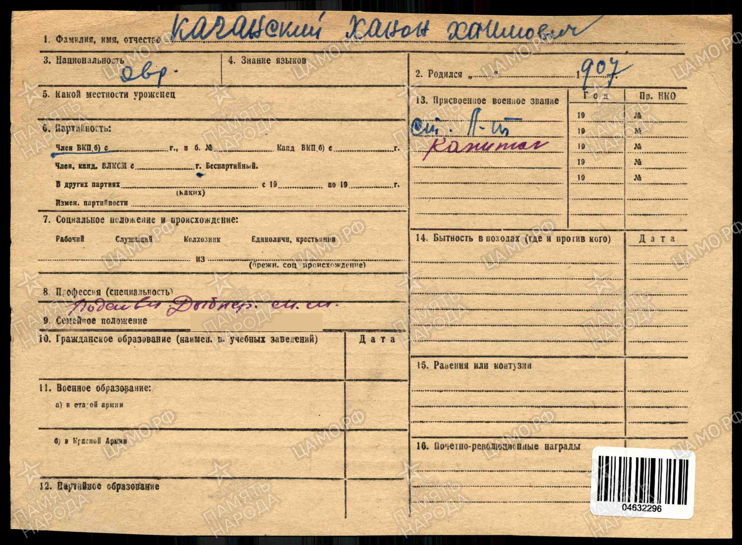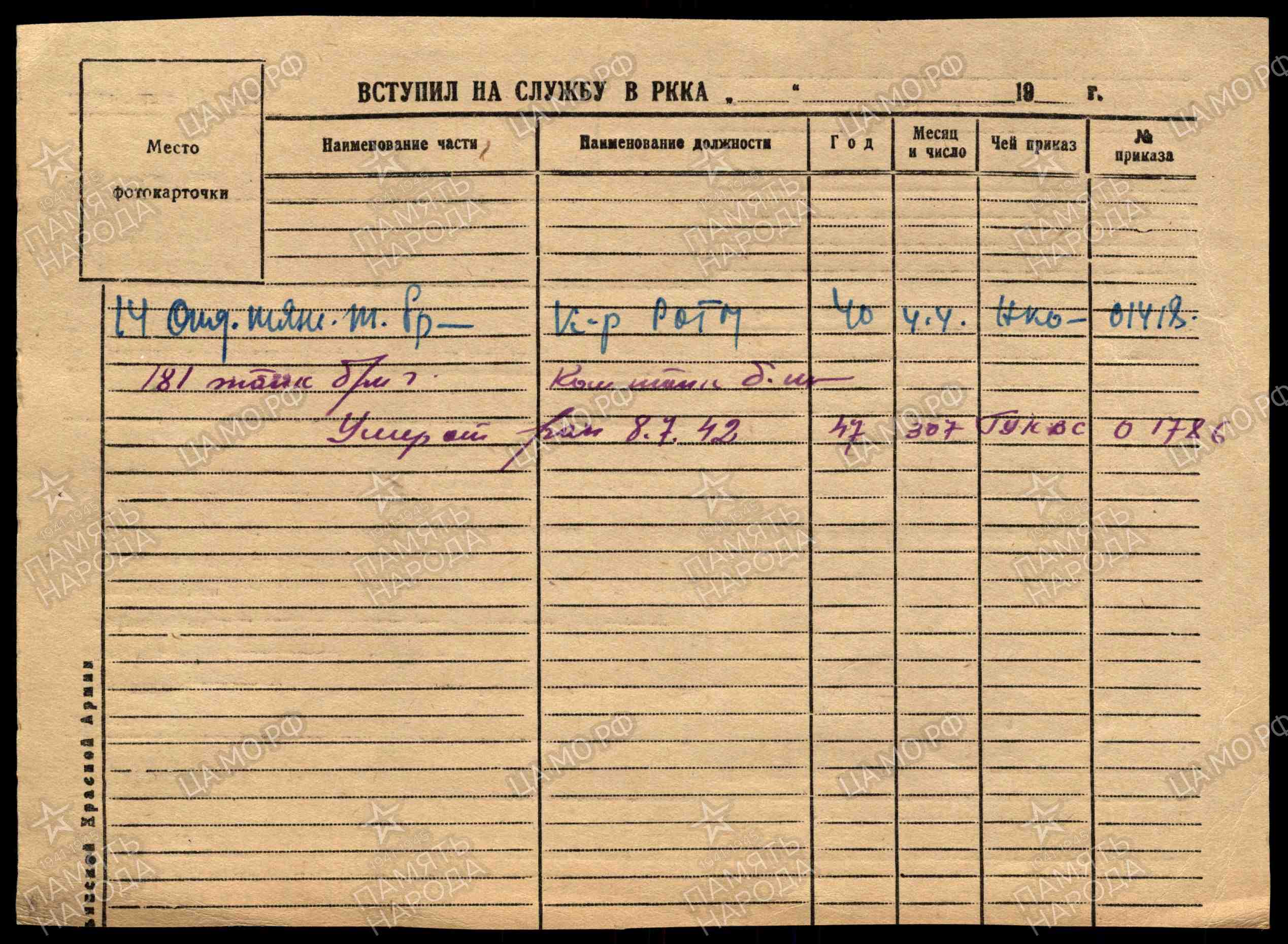 Данные из УПК (учётно - послужной карты, портал "ПАМЯТЬ НАРОДА").