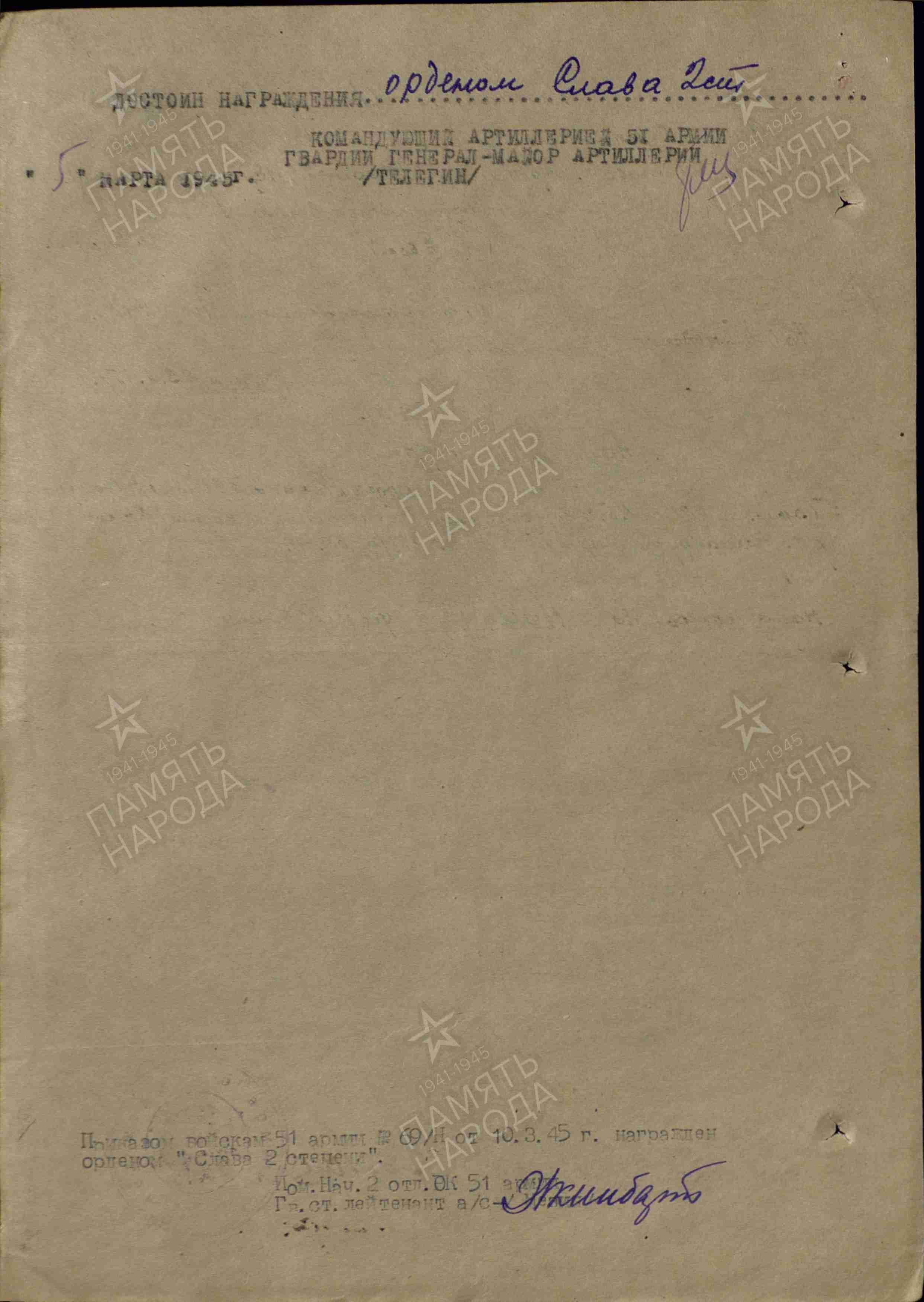 Командир орудия 764-го армейского истребительного противотанкового артиллерийского Севастопольского Краснознаменного полка, 51-й Армии.