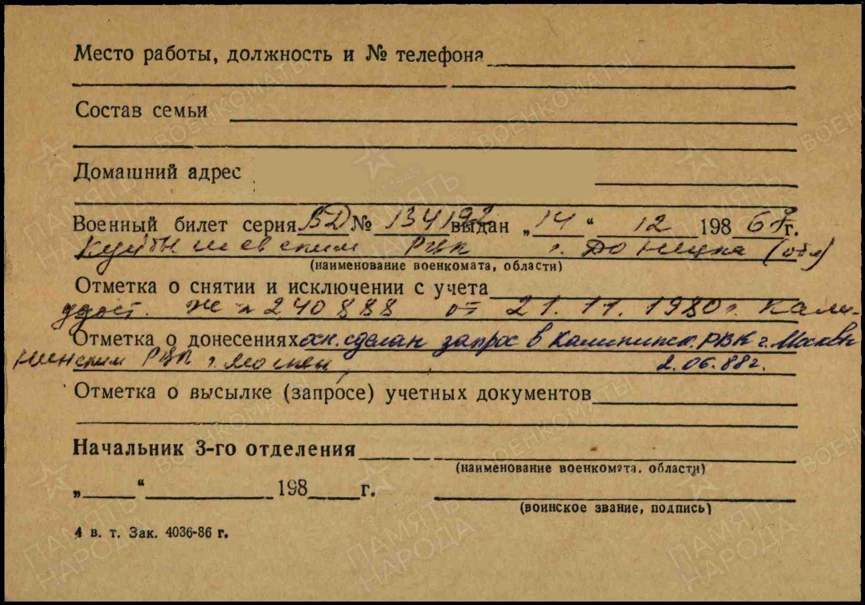 Призван в Красную Армию Миасским РВК Челябинской области в 1.1943.