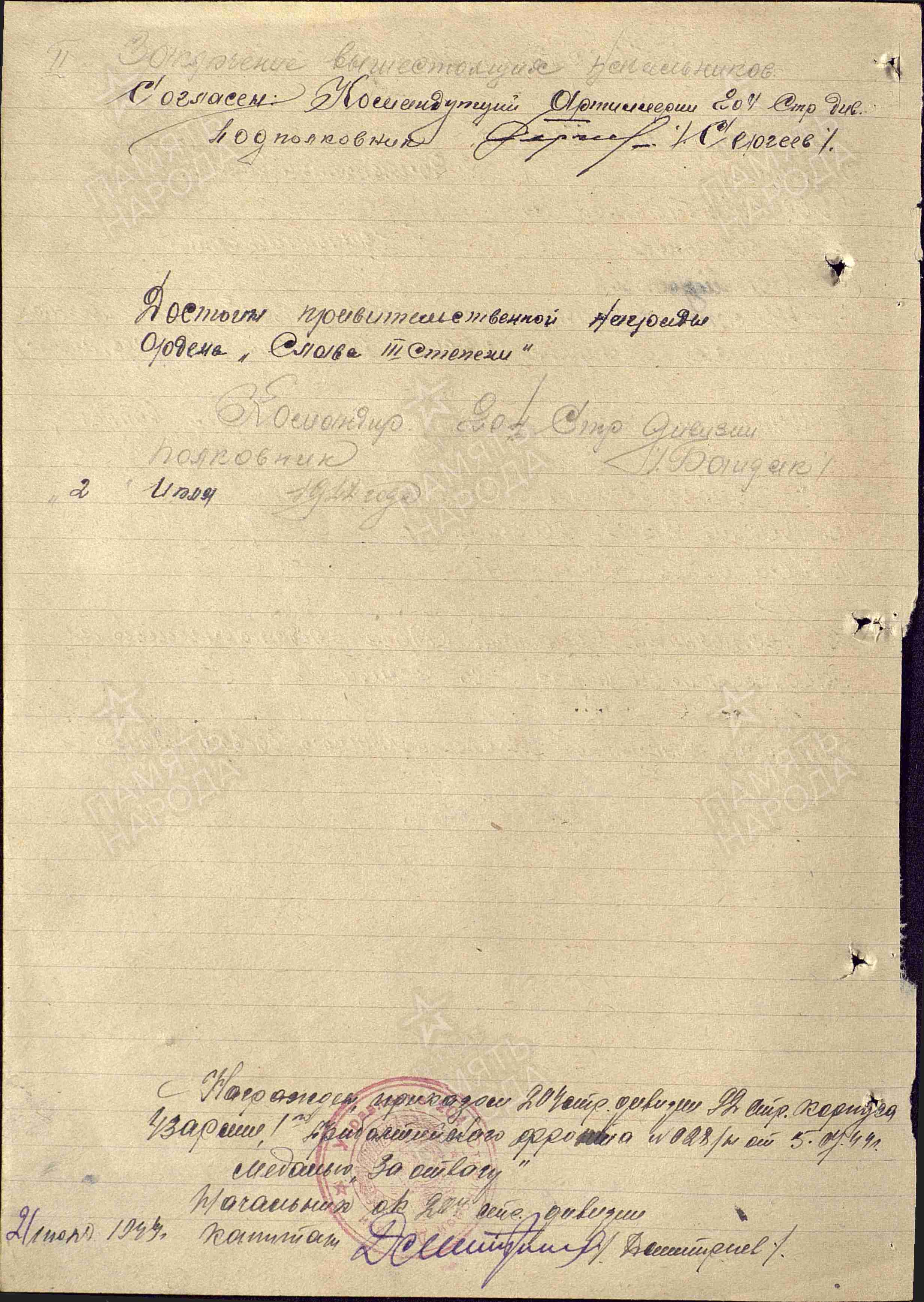 05.07.1944 Медаль «За отвагу»