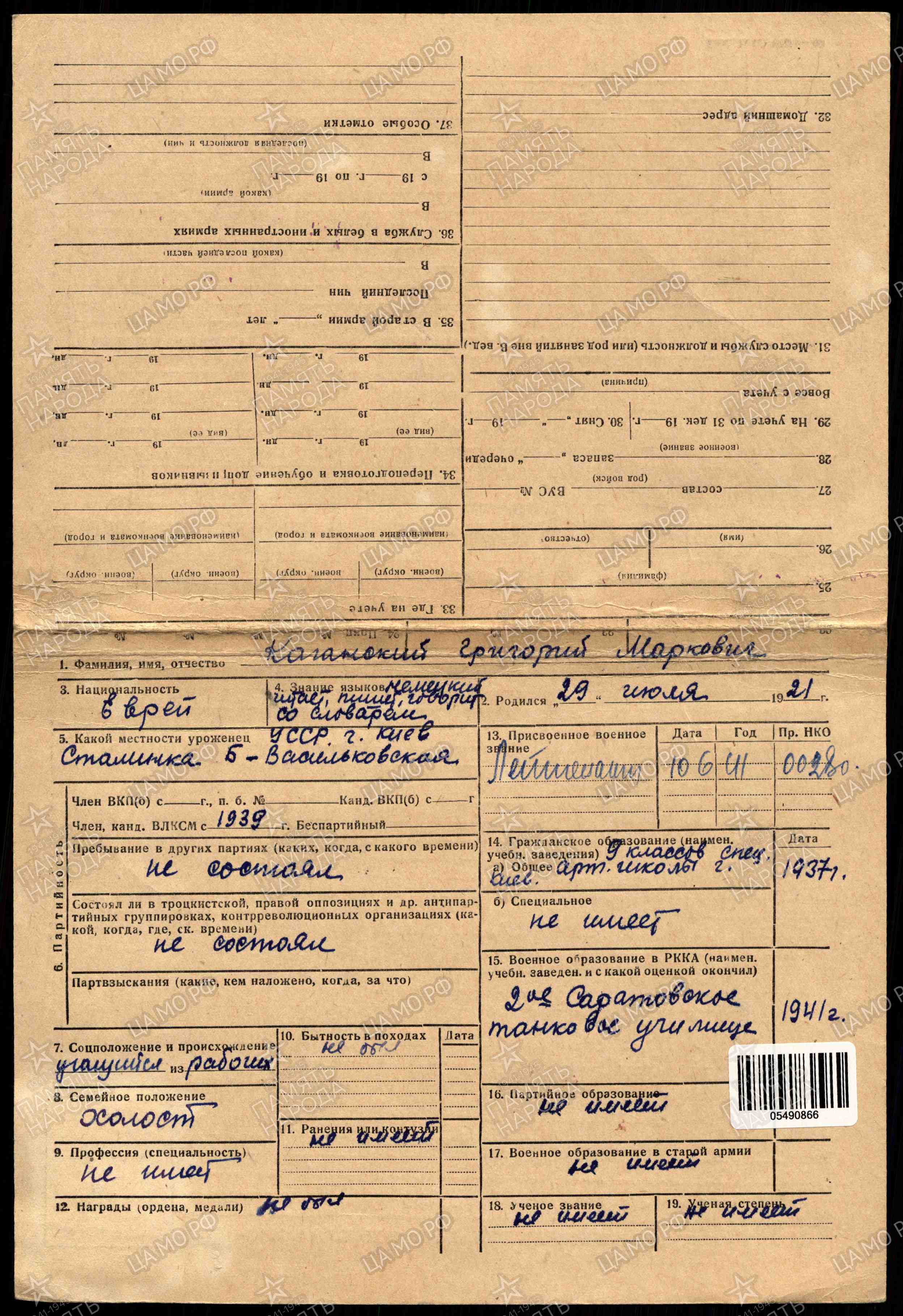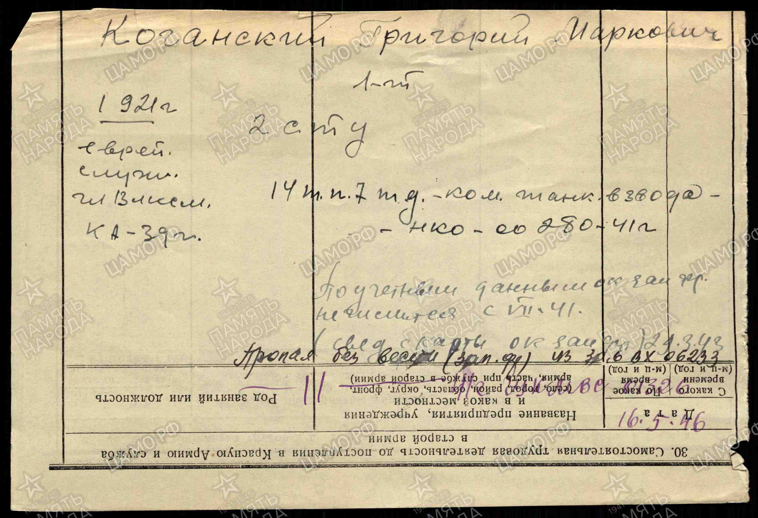 ЛИЧНАЯ СТРАНИЦА  на лейтенанта Когановского Г.М. :