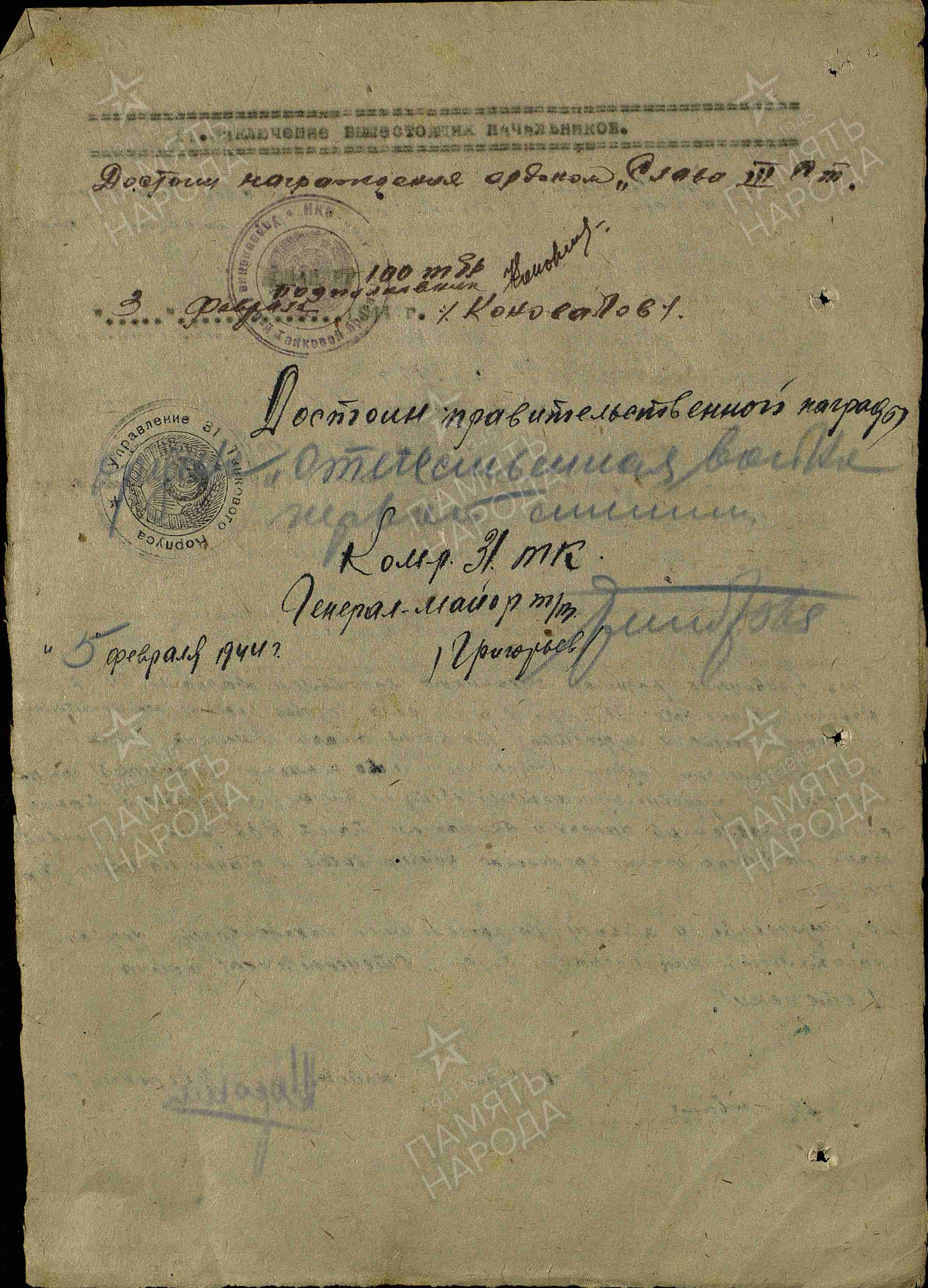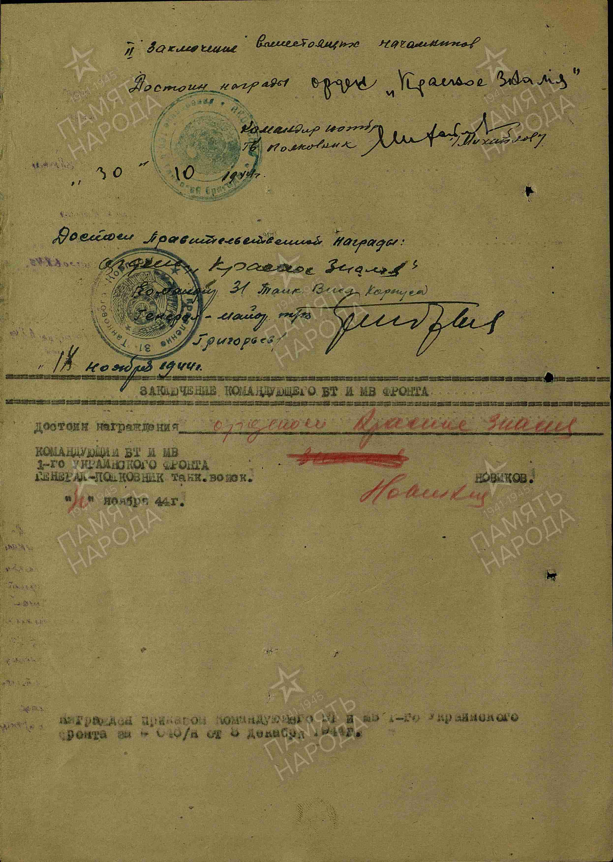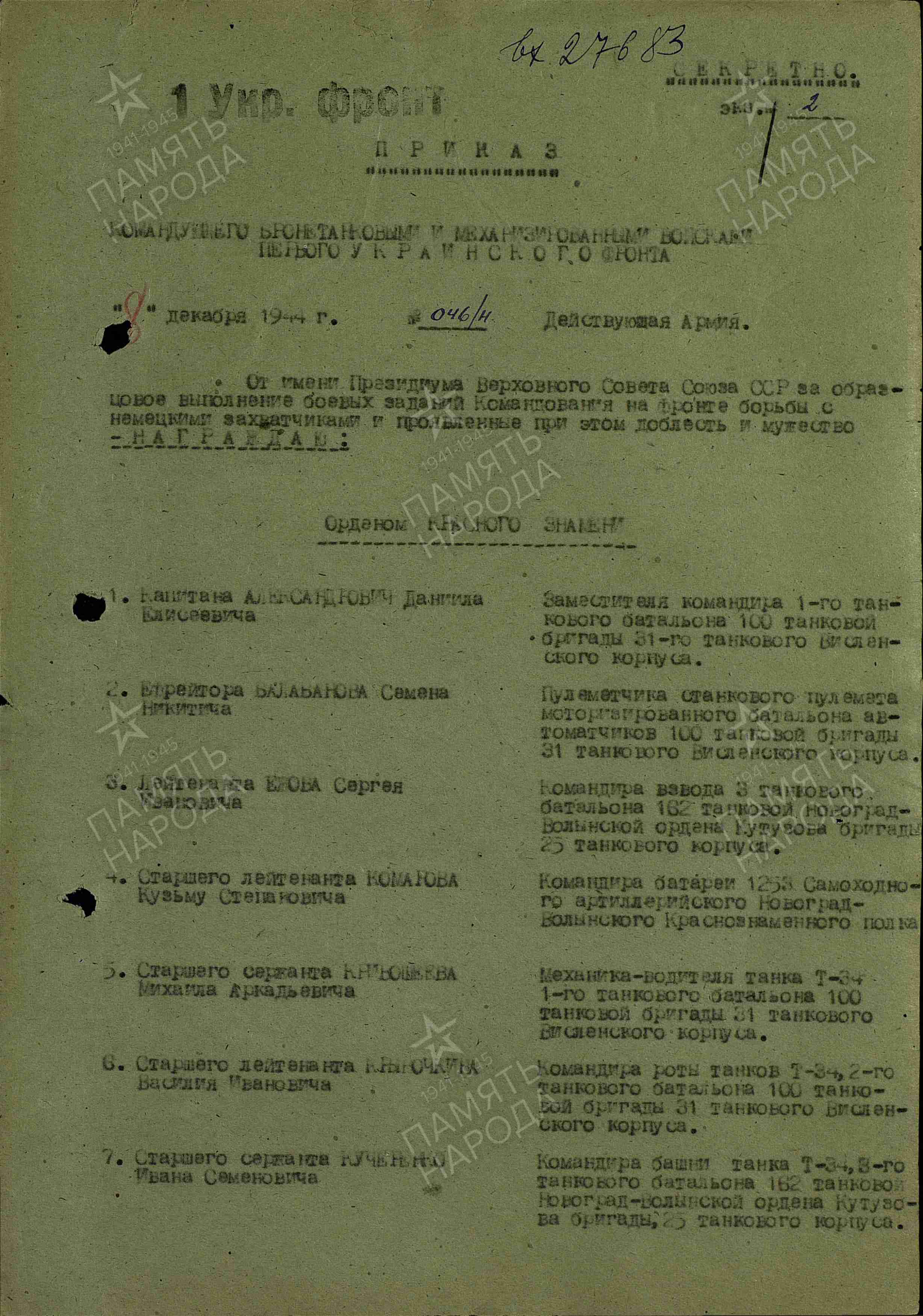 | 08.12.1944 | Орден Красного Знамени |
