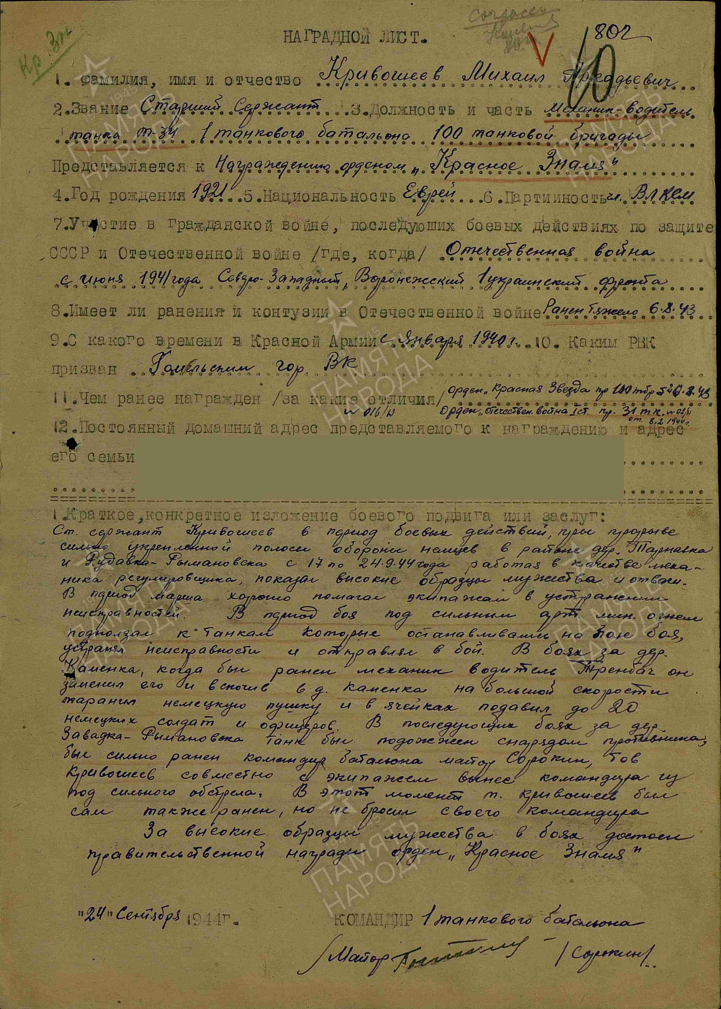 Кривошеев Михаил Аркадьевич родился в 1921 году в городе Гомель, Белоруссия. Еврей. В ряде документов записан как Кривошеин М.А.