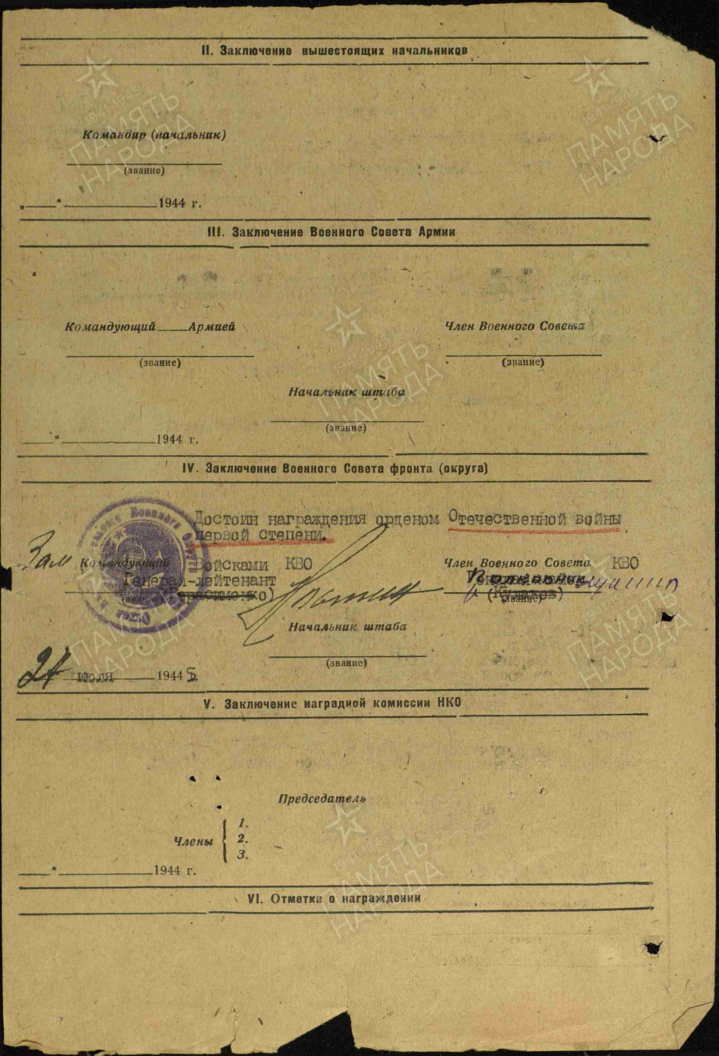 | 06.11.1947 | Орден Красной Звезды |