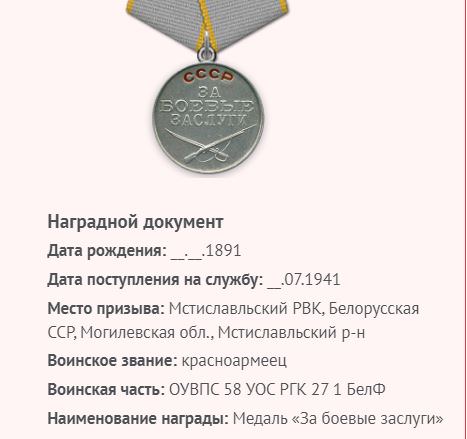 К началу войны ему было уже 55 лет. Он был призван в армию в июле 1941 г в г.Мстиславль Могилевской области.