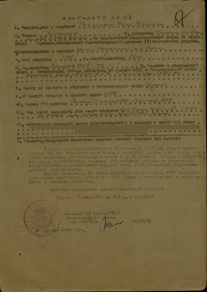 Равинский Семен Хаимович. Орден Отечественной войны II степени