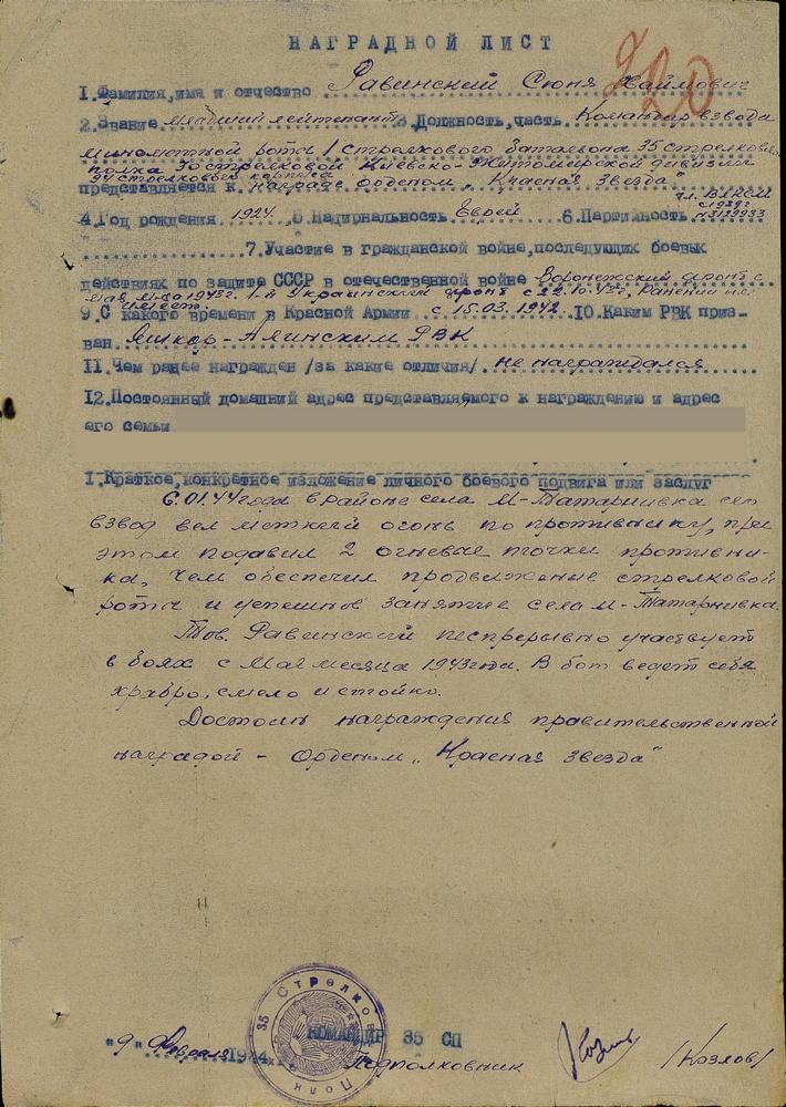 ЛИЧНАЯ СТРАНИЦА  на ст. лейтенанта Равинского С.Х. :