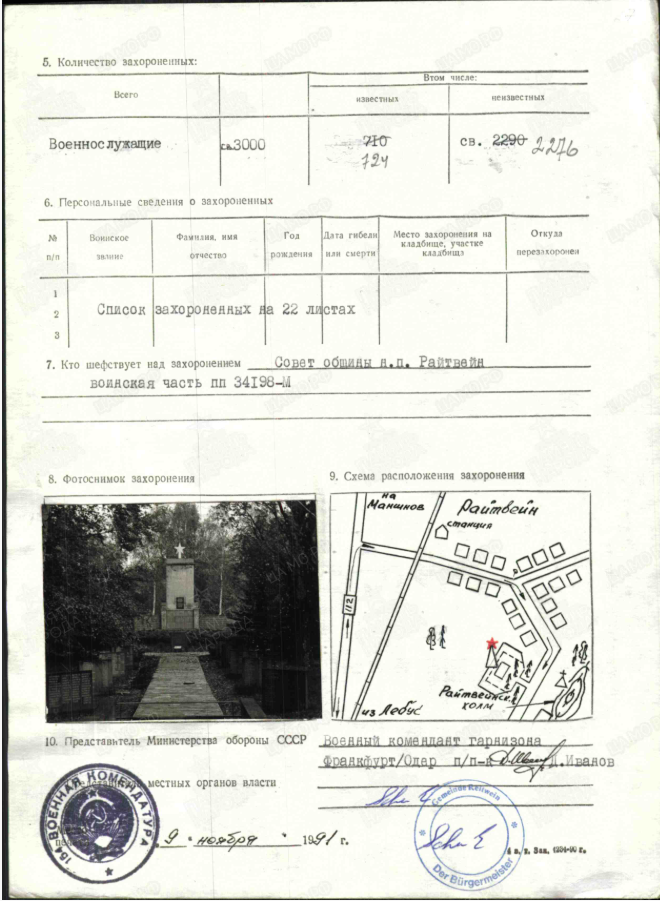 - Советское воинское захоронение в д. Райтвейн округа Франкфурт/Одер района Зеелов, подножие Райтвейнского холма по состоянию на 09.11.1991 г./Reitwein, Landkreis Märkisch-Oderland, Land Brandenburg, Deutschland - nach der Kreisreform vom 06.12.93.