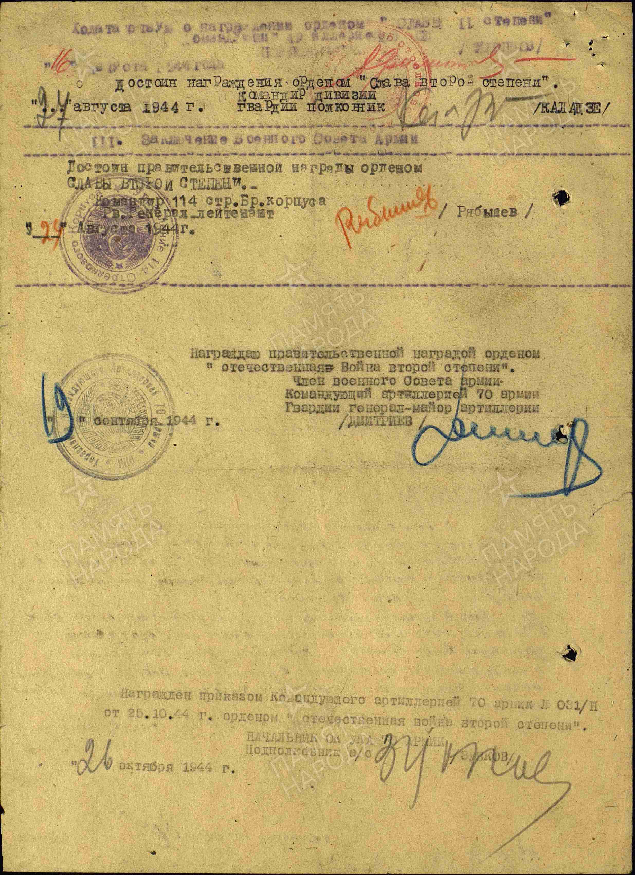 Командир орудия 2-й батареи 199-го ОИПТД 165-й стрелковой Седлецкой Краснознаменной дивизии.