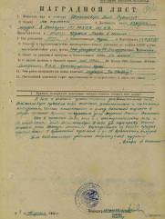 Медали: "ЗА ОТВАГУ",  "ЗА ПОБЕДУ НАД ГЕРМАНИЕЙ В ВЕЛИКОЙ ОТЕЧЕСТВЕННОЙ ВОЙНЕ 1941 - 1945 ГГ.", и другие.