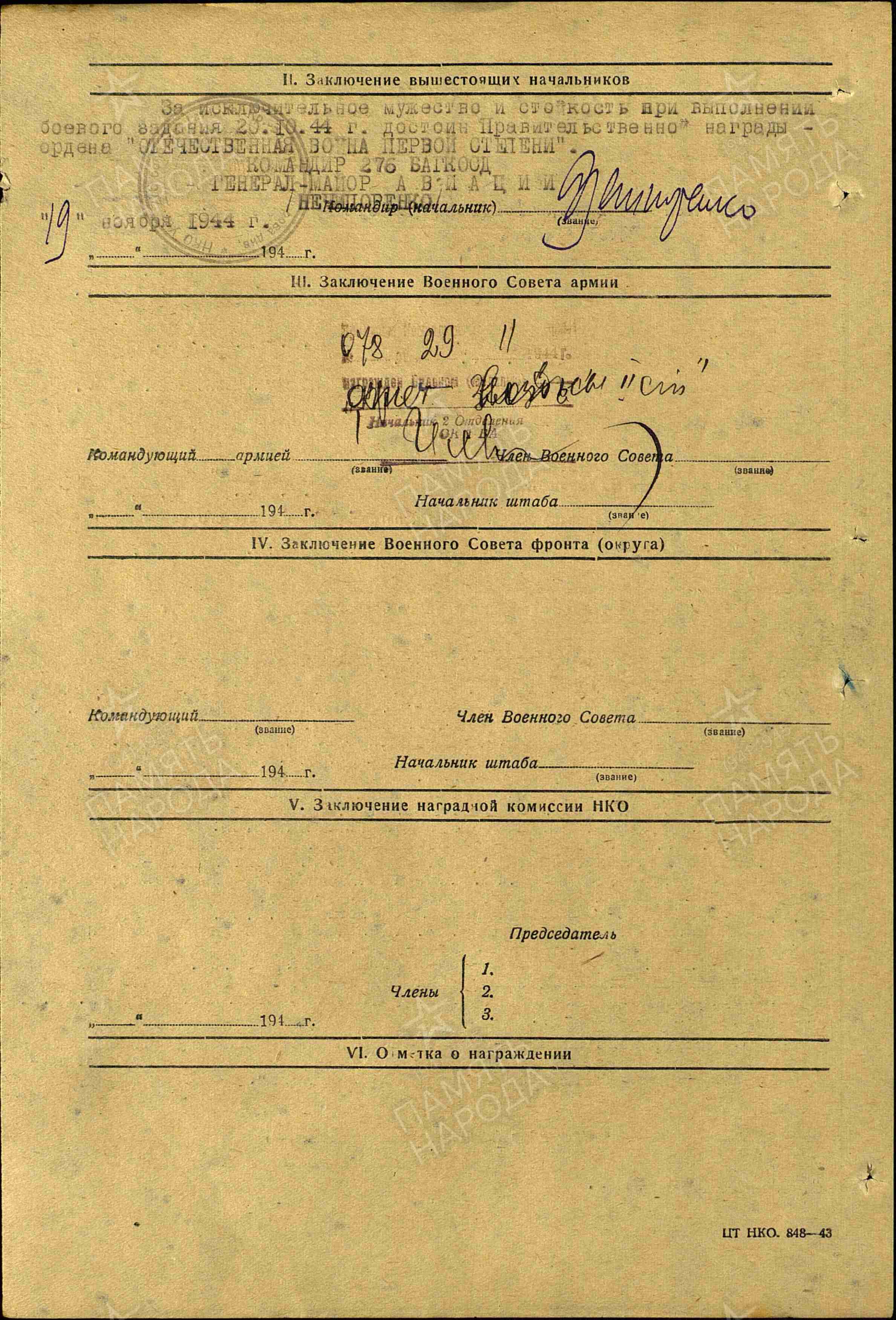 | 29.11.1944 | Орден Отечественной войны II степени |