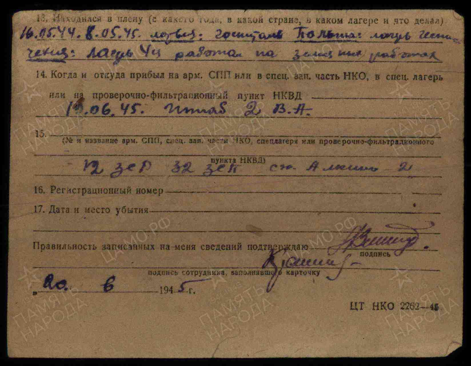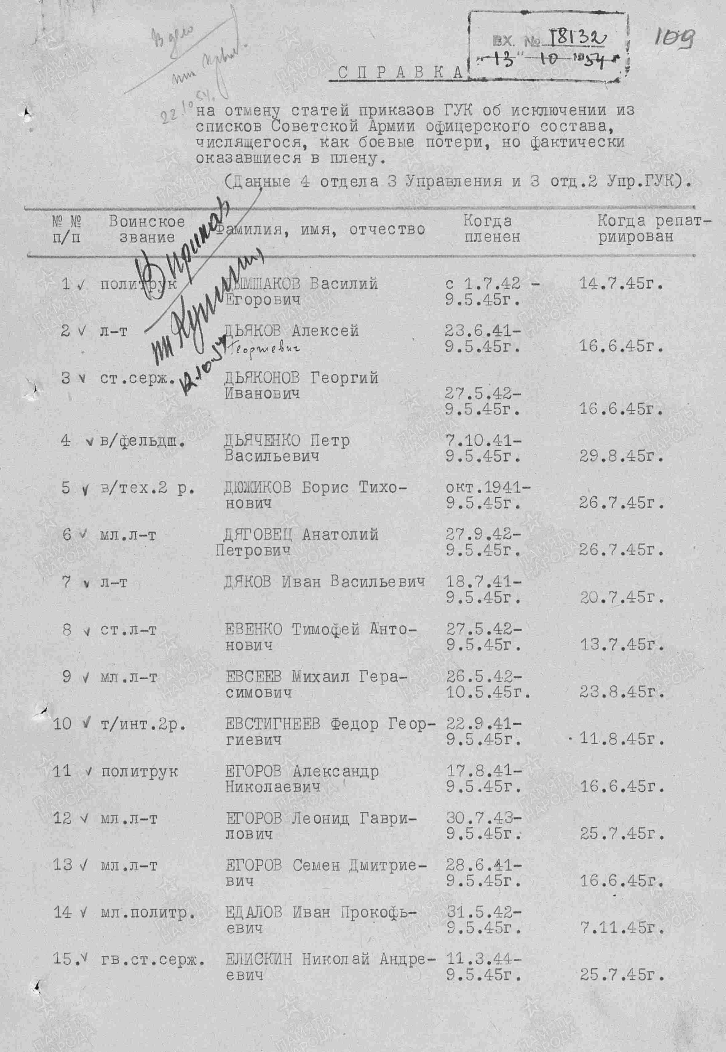 Данные из УПК (учётно - послужной карты, портал "ПАМЯТЬ НАРОДА").