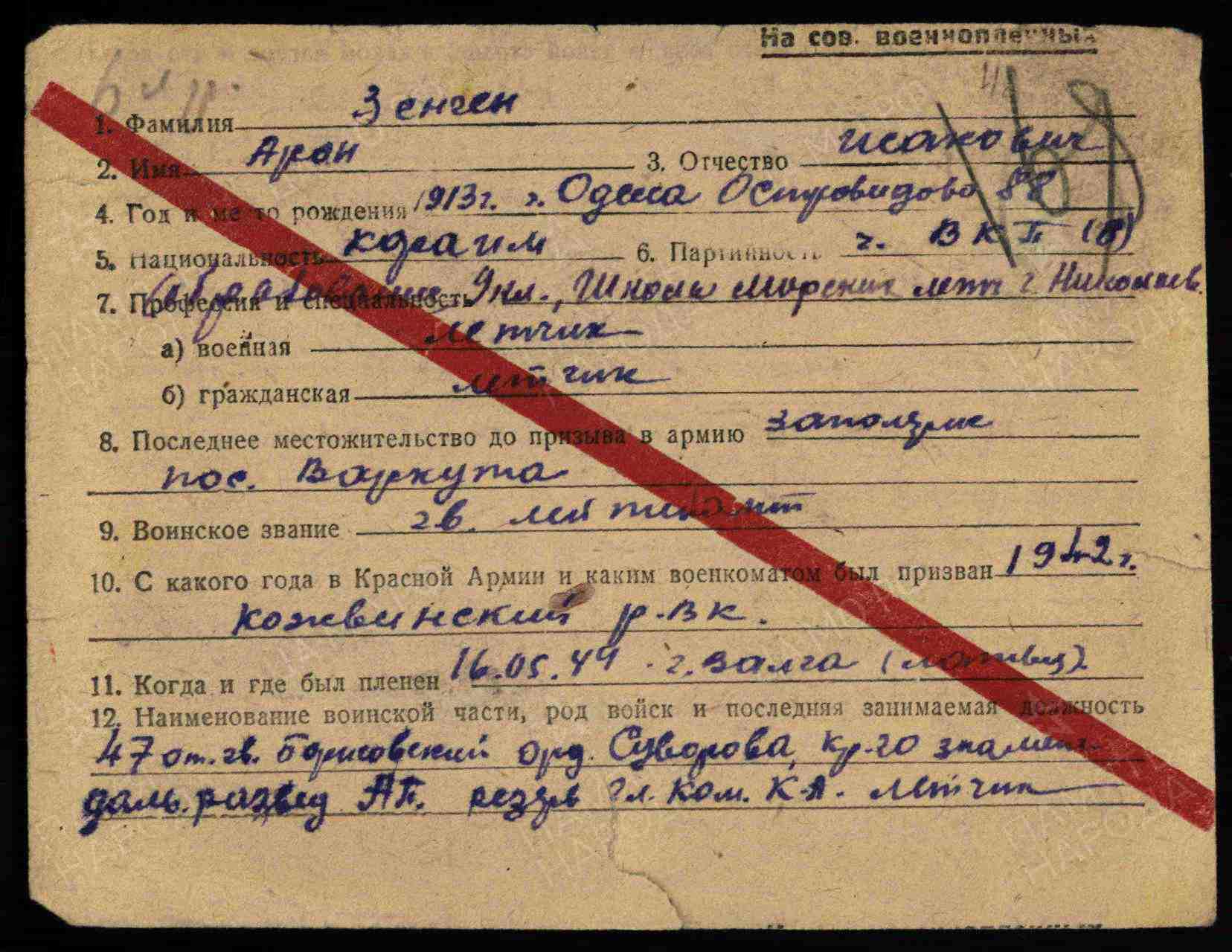 ЛИЧНАЯ СТРАНИЦА на гвардии лейтенанта ЗЕНГИНА А. И.: