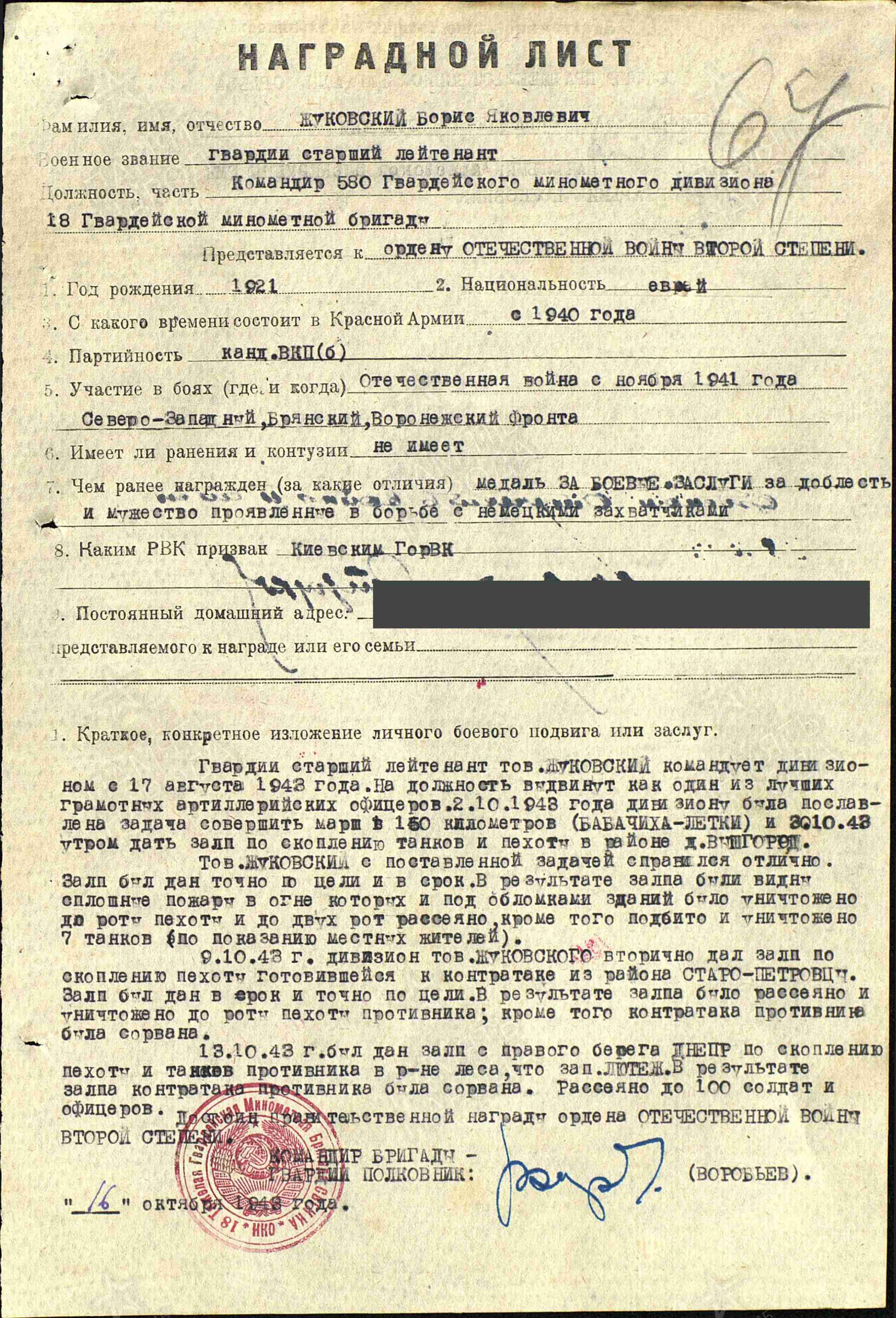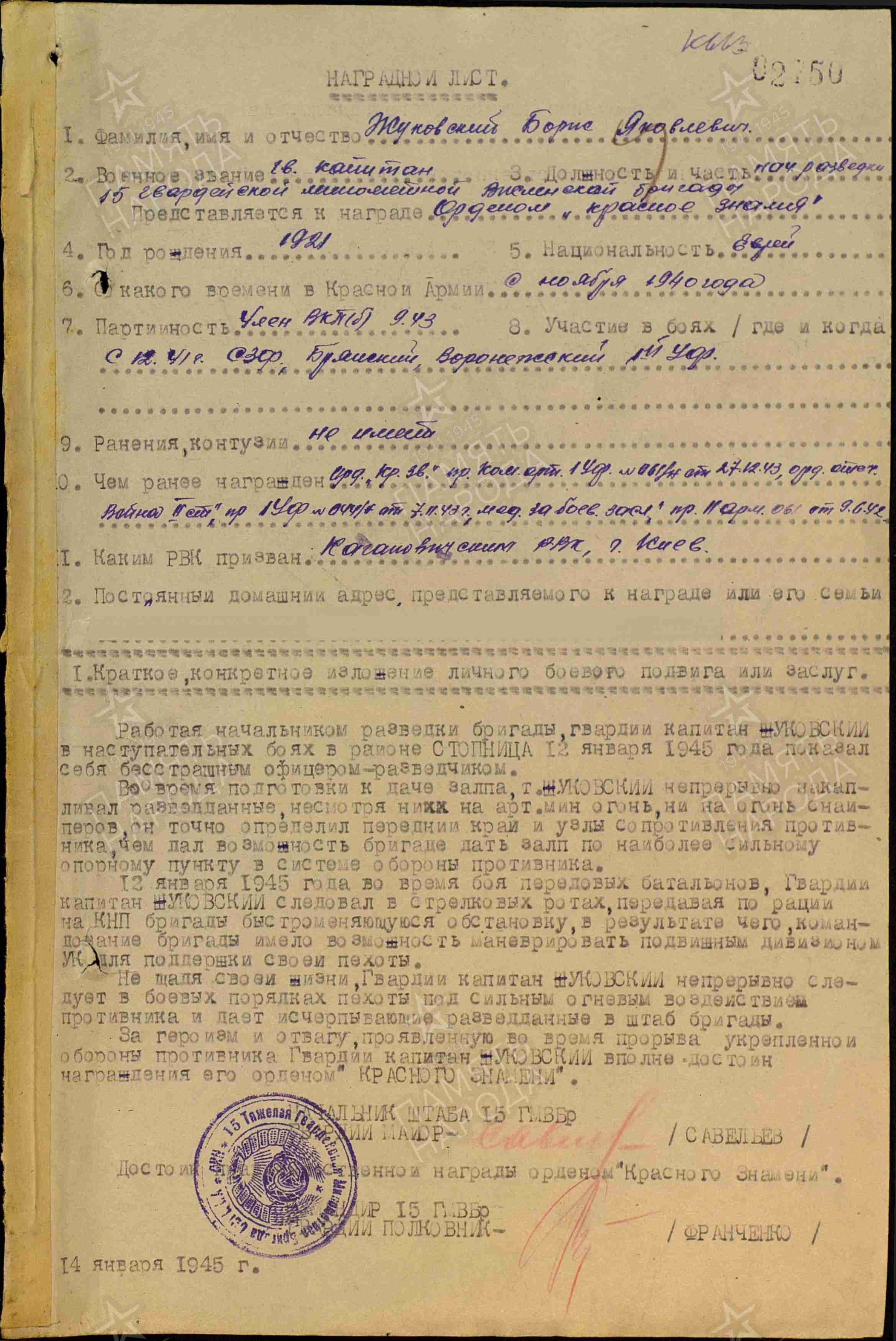 ЛИЧНАЯ СТРАНИЦА  на  капитана Жуковского Б.Я. :
