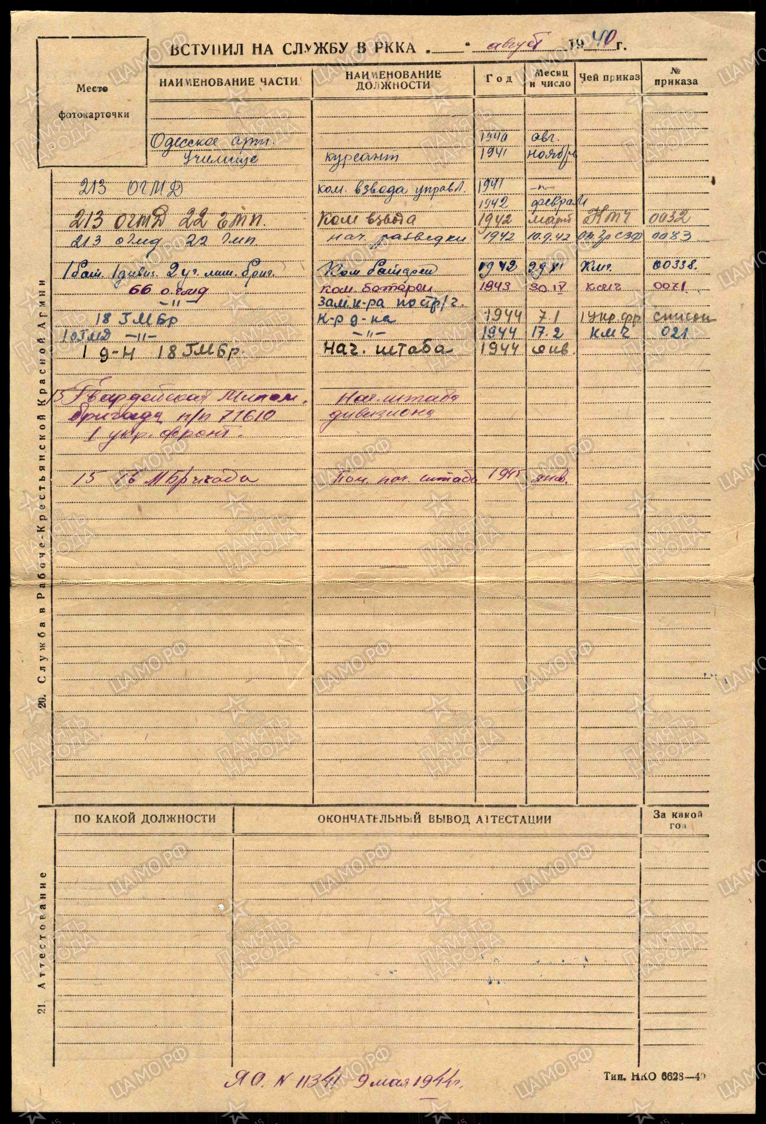 11.1941 окончил Одесское артиллерийское училище. С того же времени на передовой.