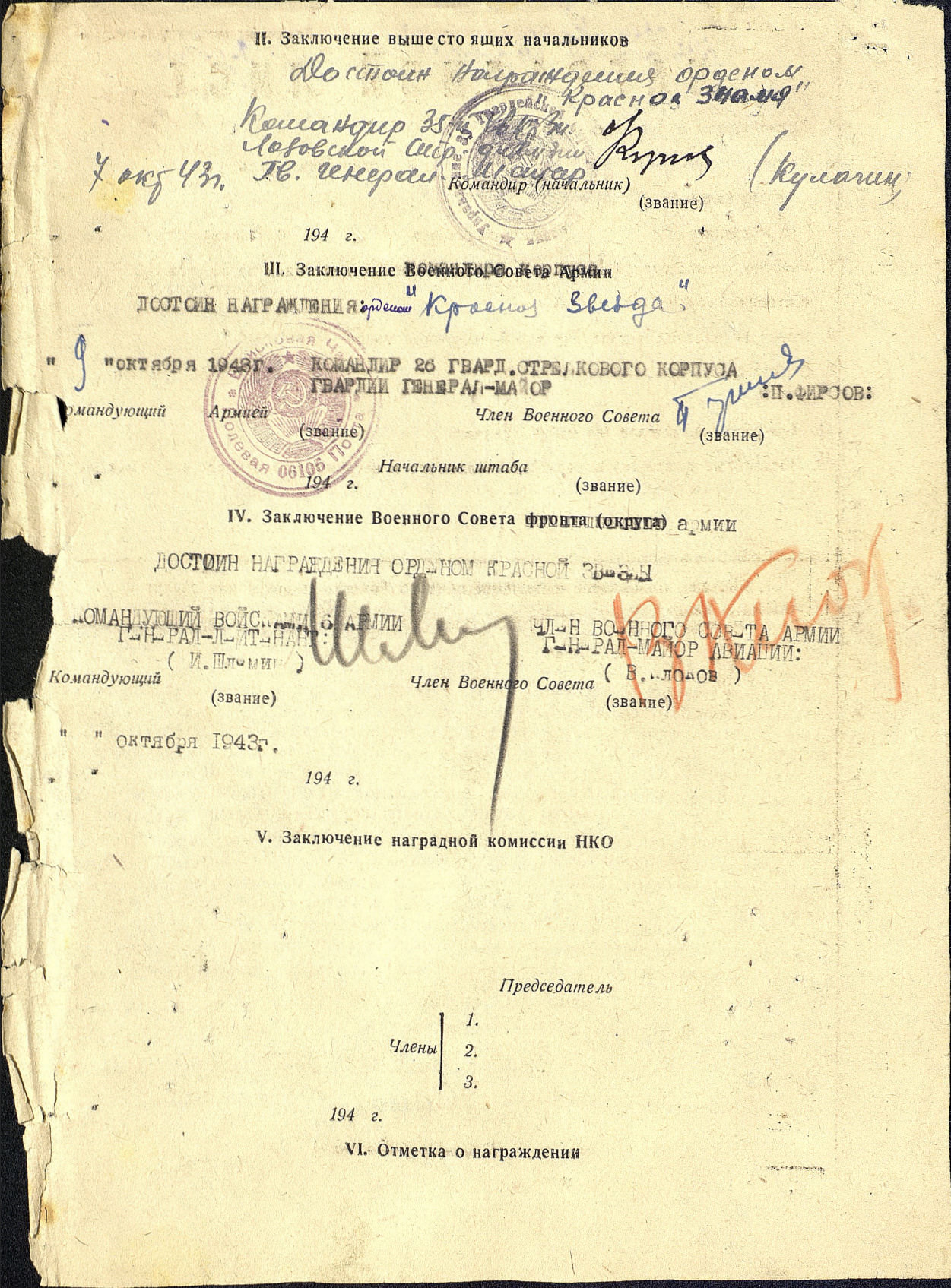 Тяжело ранен 5 мая 1944 года.