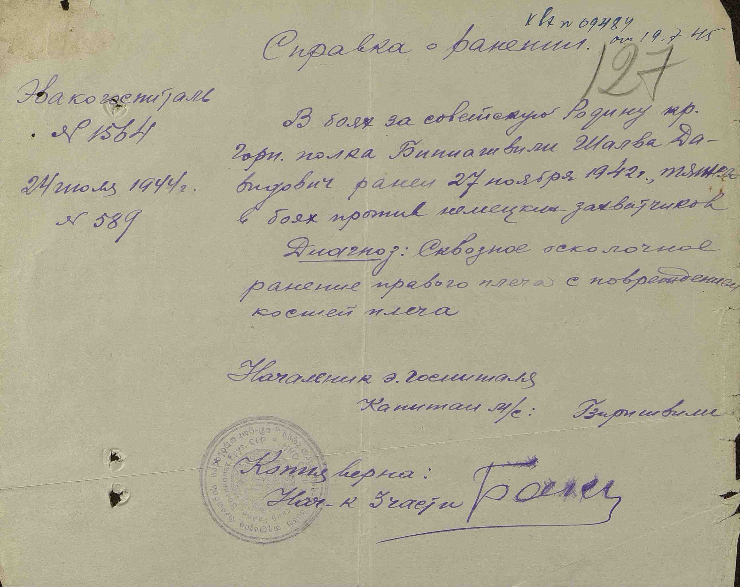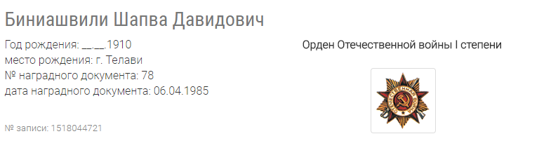Биниашвили Шалва Давидович родился в 1910 году в городе Телави в Грузии. Еврей.