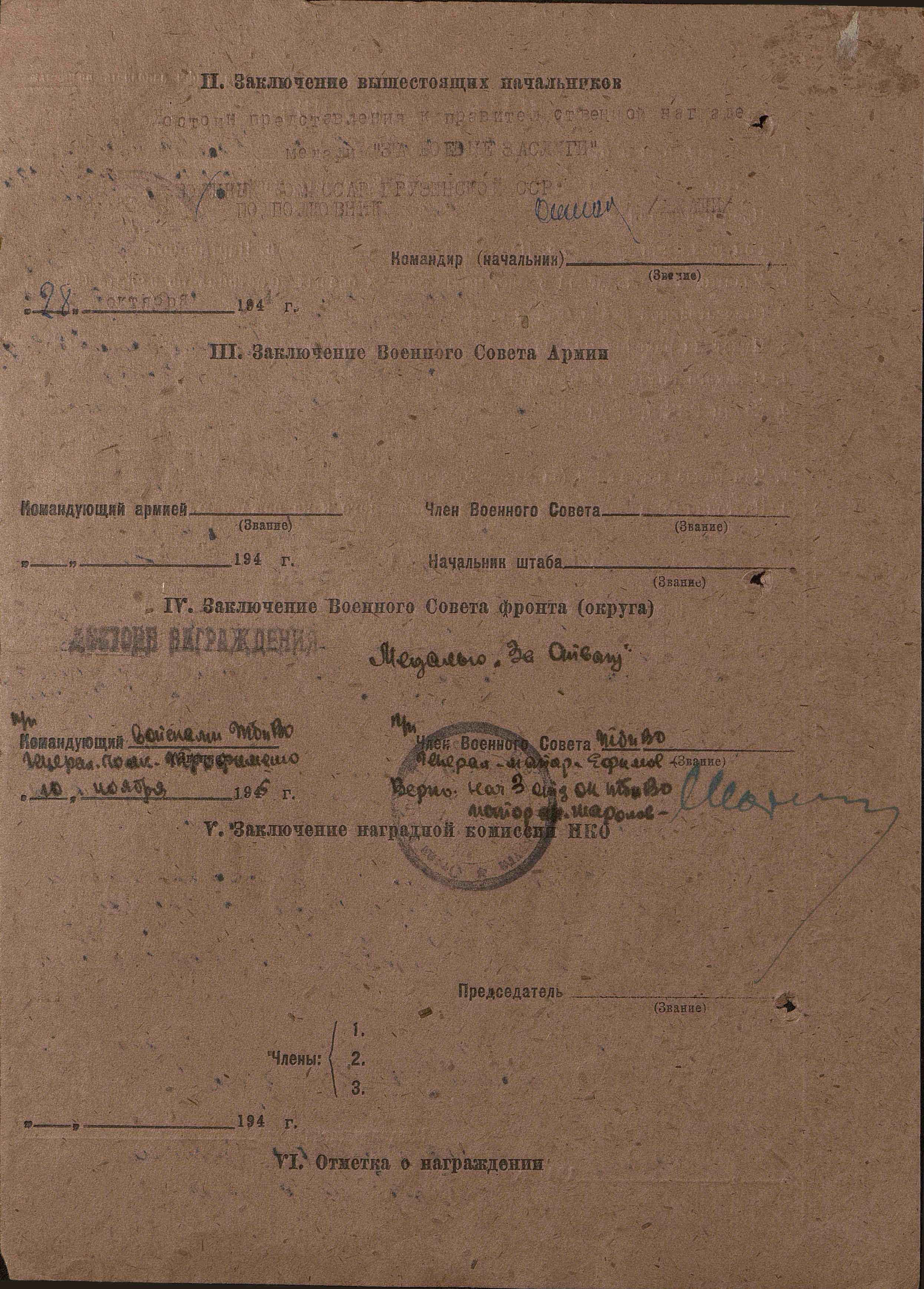 24 сентября 1942 года был тяжело ранен в правое плечо в бою при взятии села Гизель.