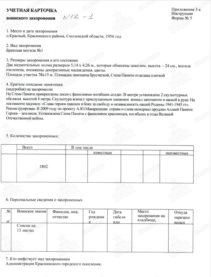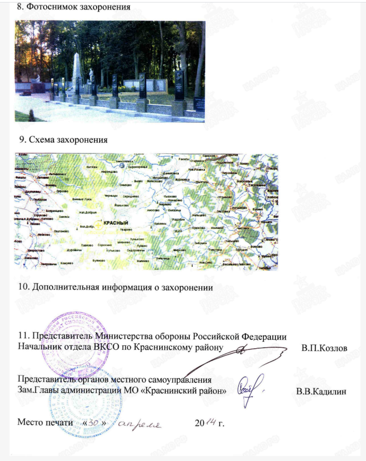 Кто шефствует над захоронением Администрация г.п. Краснинское