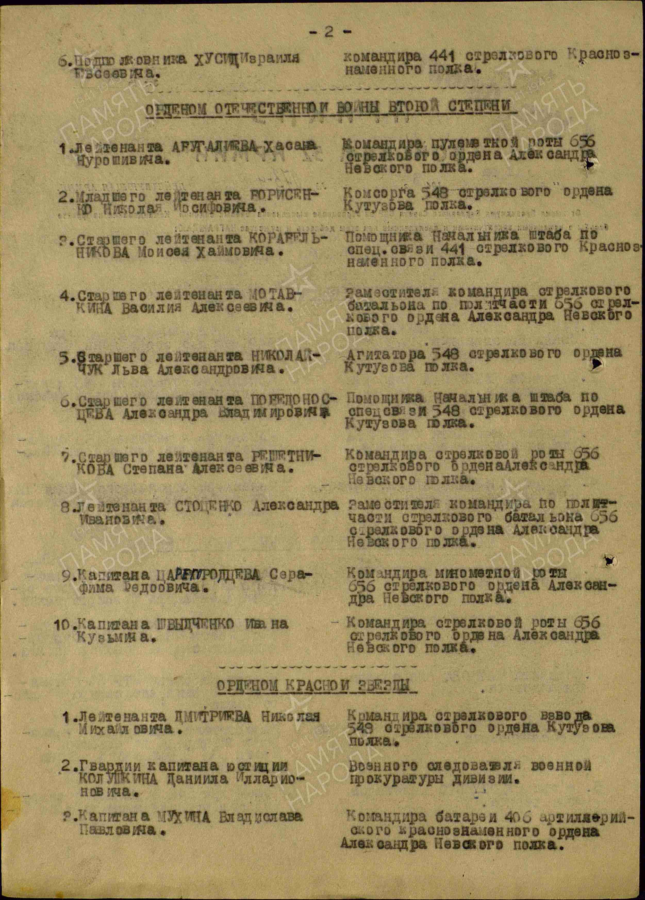 Начальник штаба 441 стрелкового полка, 116 стрелковой Харьковской дивизии, 53 армии, 2 Украинского фронта (1943).
