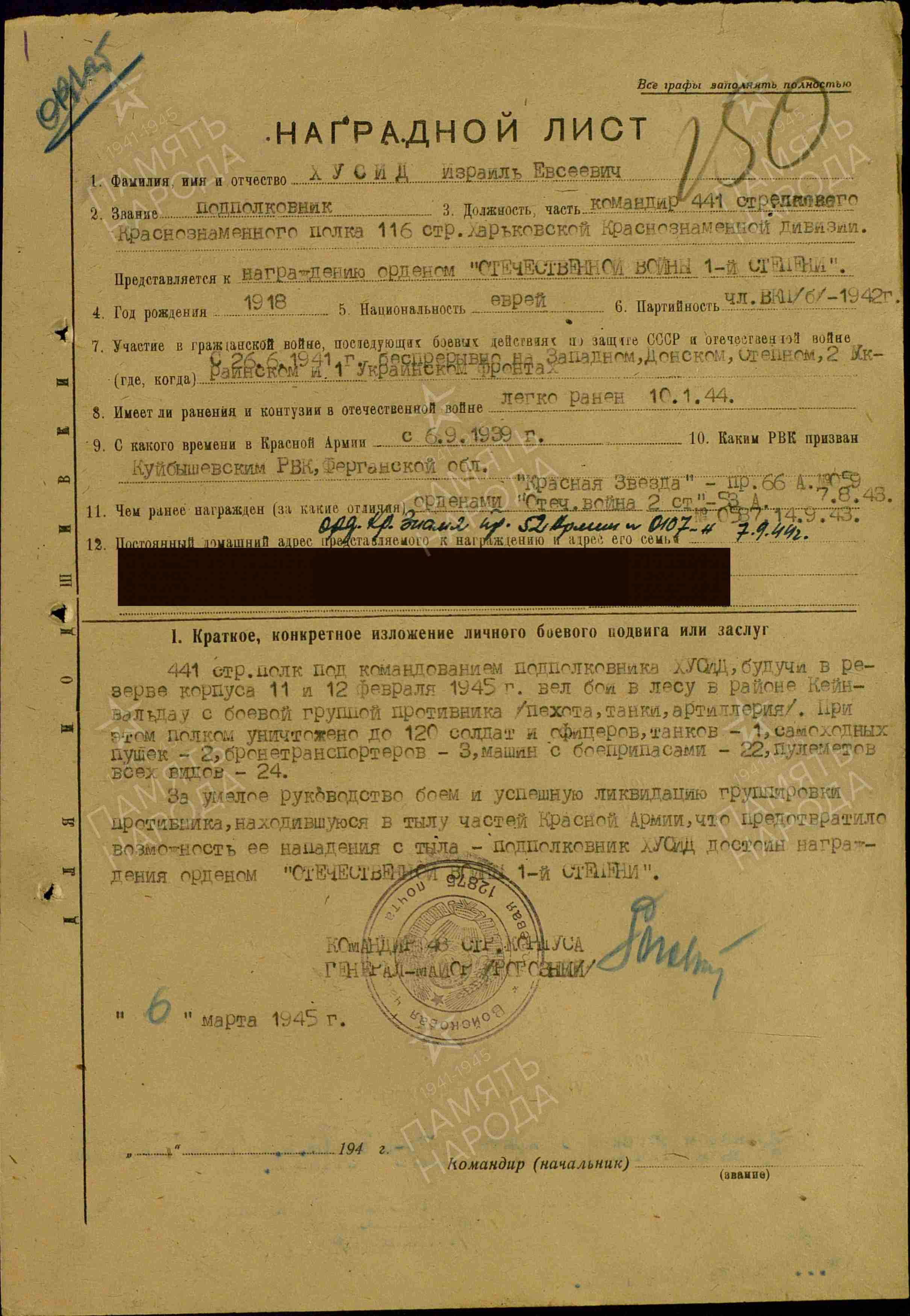 Убедительно прошу, всех располагающих информацией о подполковнике ХУСИДЕ ИЗРАИЛЕ ЕВСЕЕВИЧЕ, имеющих фото его и его семьи, сообщить на адрес электронной почты: genn53@list.ri
