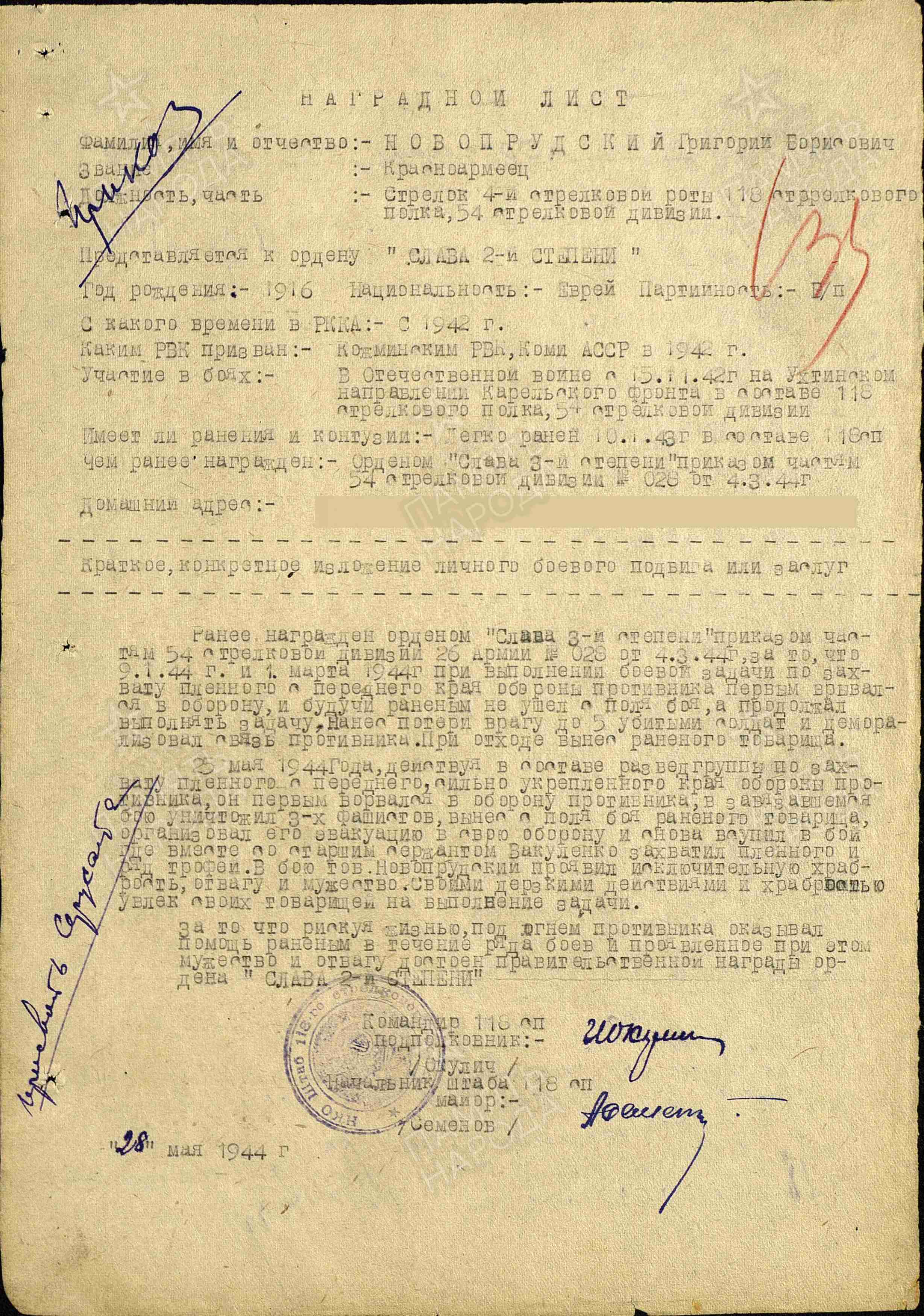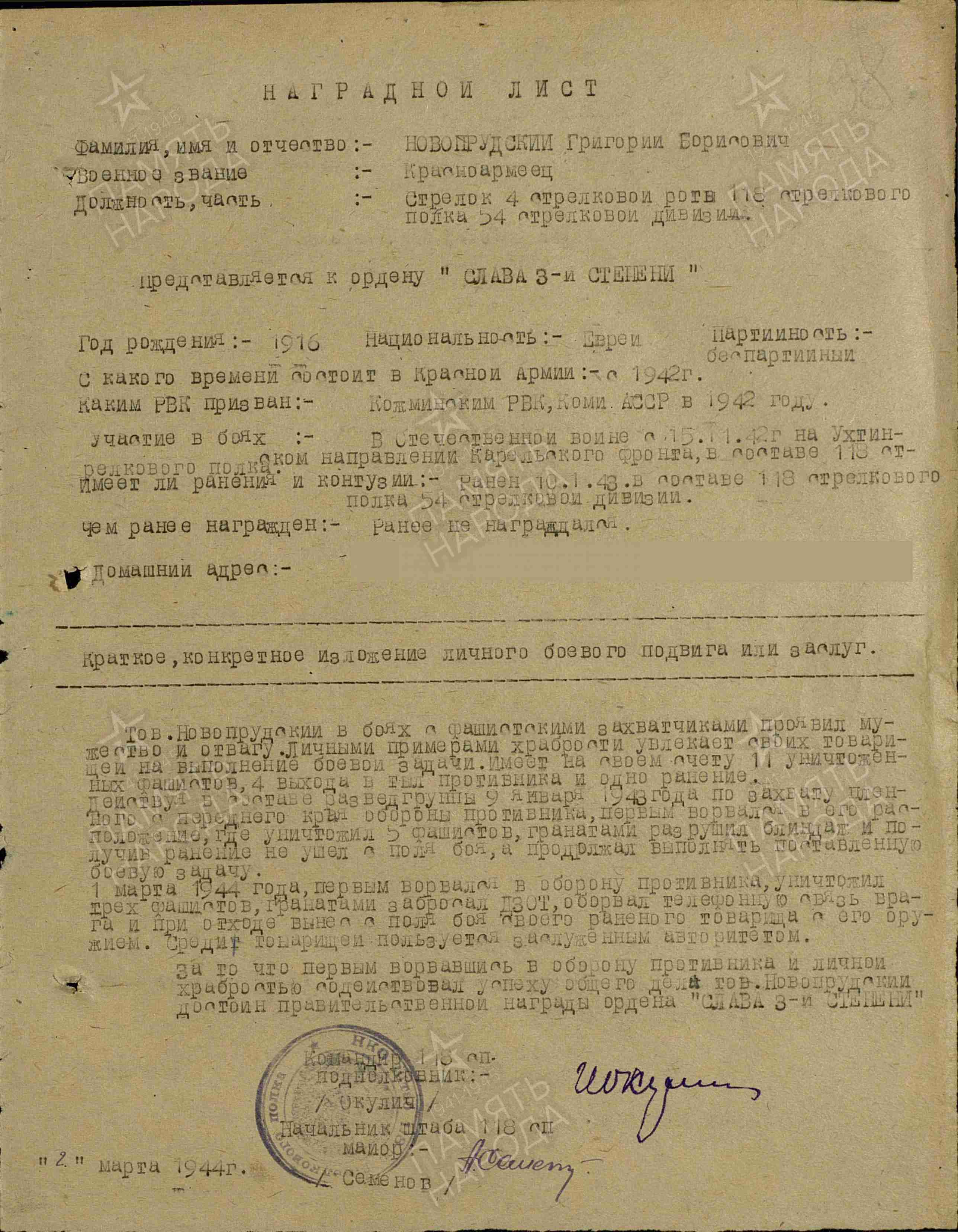 Новопрудский Григорий Борисович родился в 1916 году в городе Екатеринославе (Днепропетровске). Рабочий.