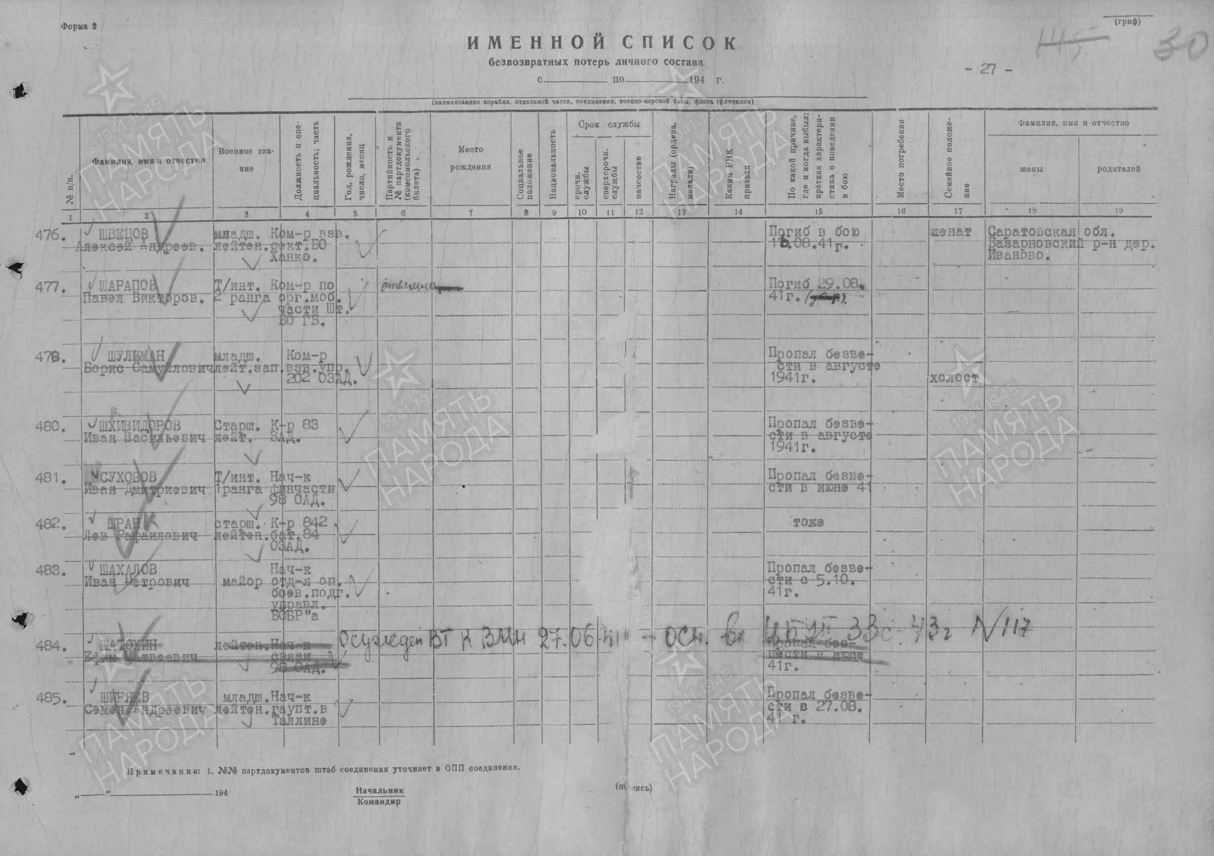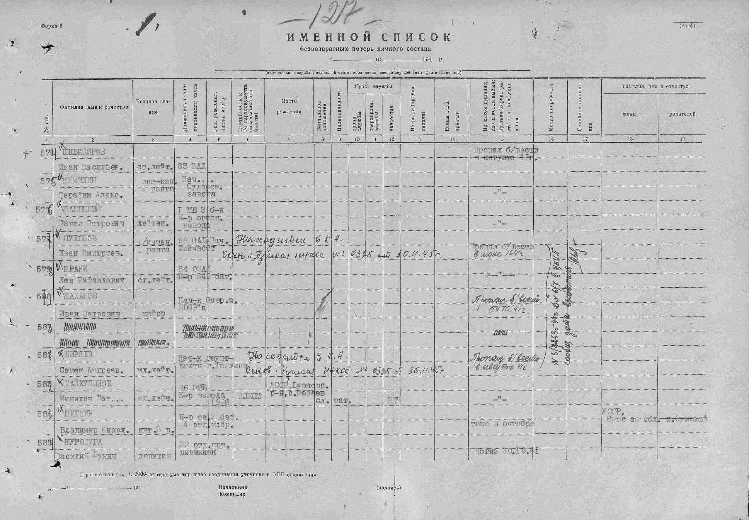 - ст. лейтенант Шранк Лев Рафаилович 1907 - 01.07.1941