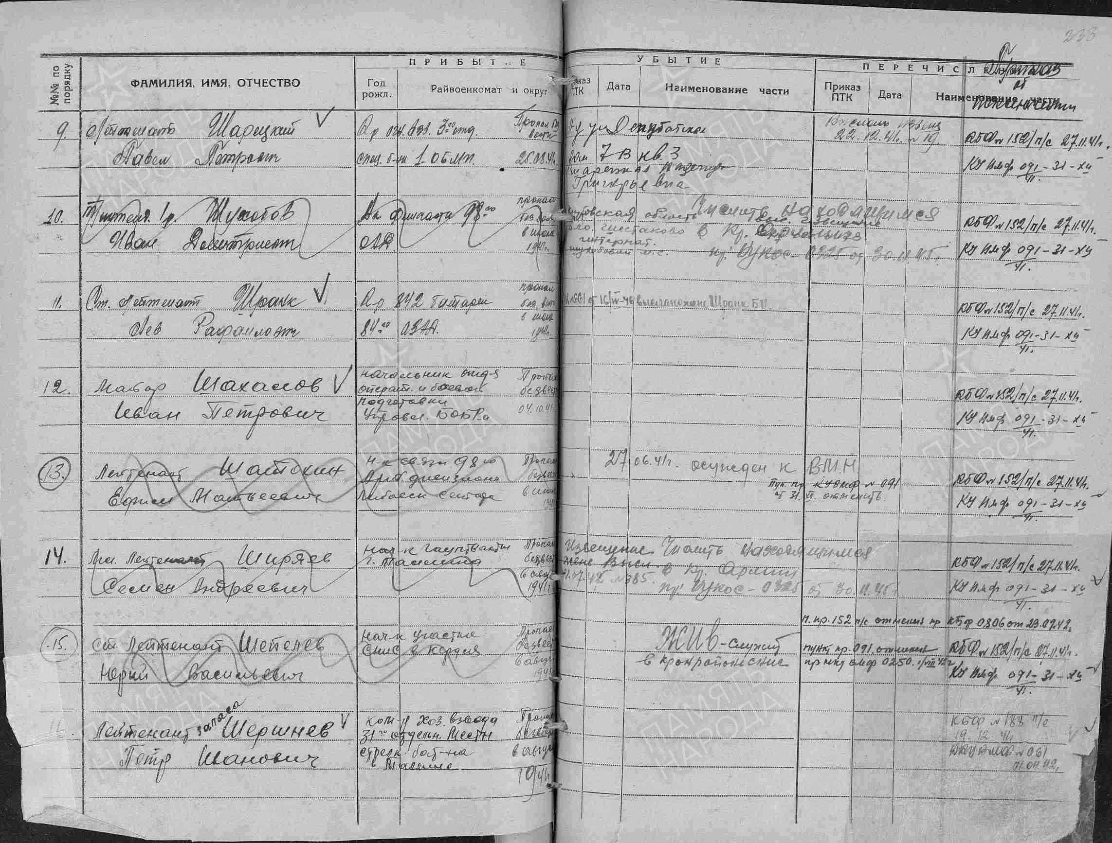 Данные из УПК (учётно - послужной карты, портал "ПАМЯТЬ НАРОДА 1941 - 1945").