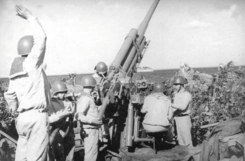 Около четырёх часов утра, 22 июля 1941 года, разведчик 841-й батареи, краснофлотец Кукушкин доложил о шуме моторов самолётов в морском секторе. Батареи огня не открывали, приказ не отдавался, надеялись на очередную провокацию противника, но началась бомбардировка города и с этого момента зенитные батареи вступили в бой.