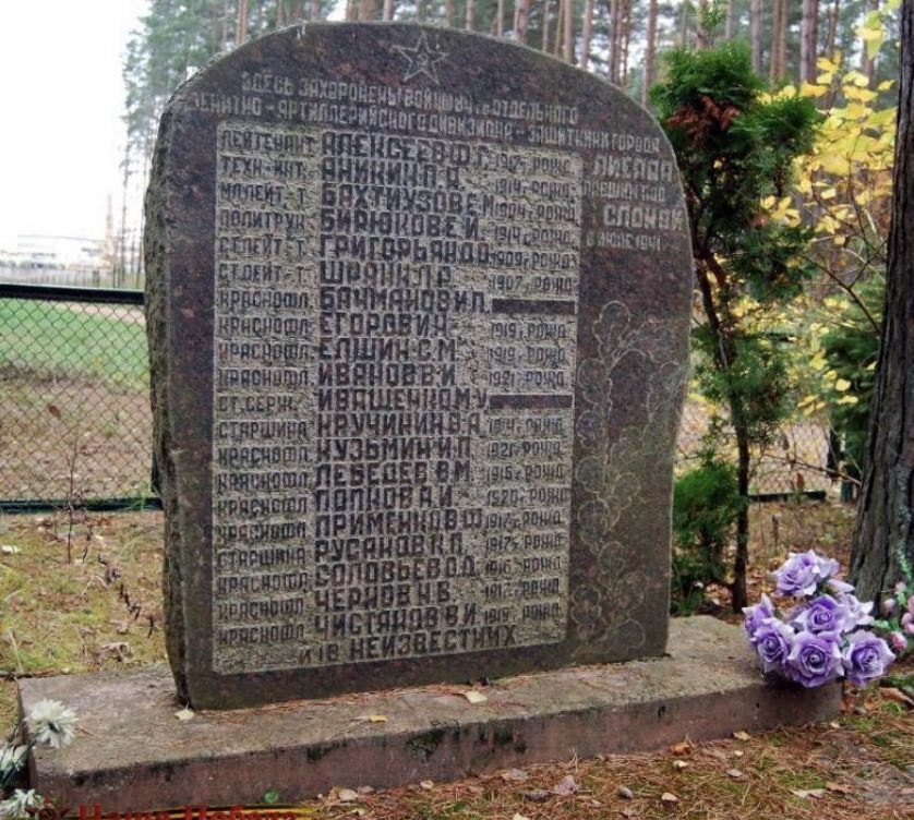 Погибших моряков-зенитчиков местные жители похоронили на месте боя. А позже могила была перенесена на слокское Лесное кладбище. В 1967 году у железнодорожной станции был открыт памятник – на постаменте замерло зенитное орудие.
