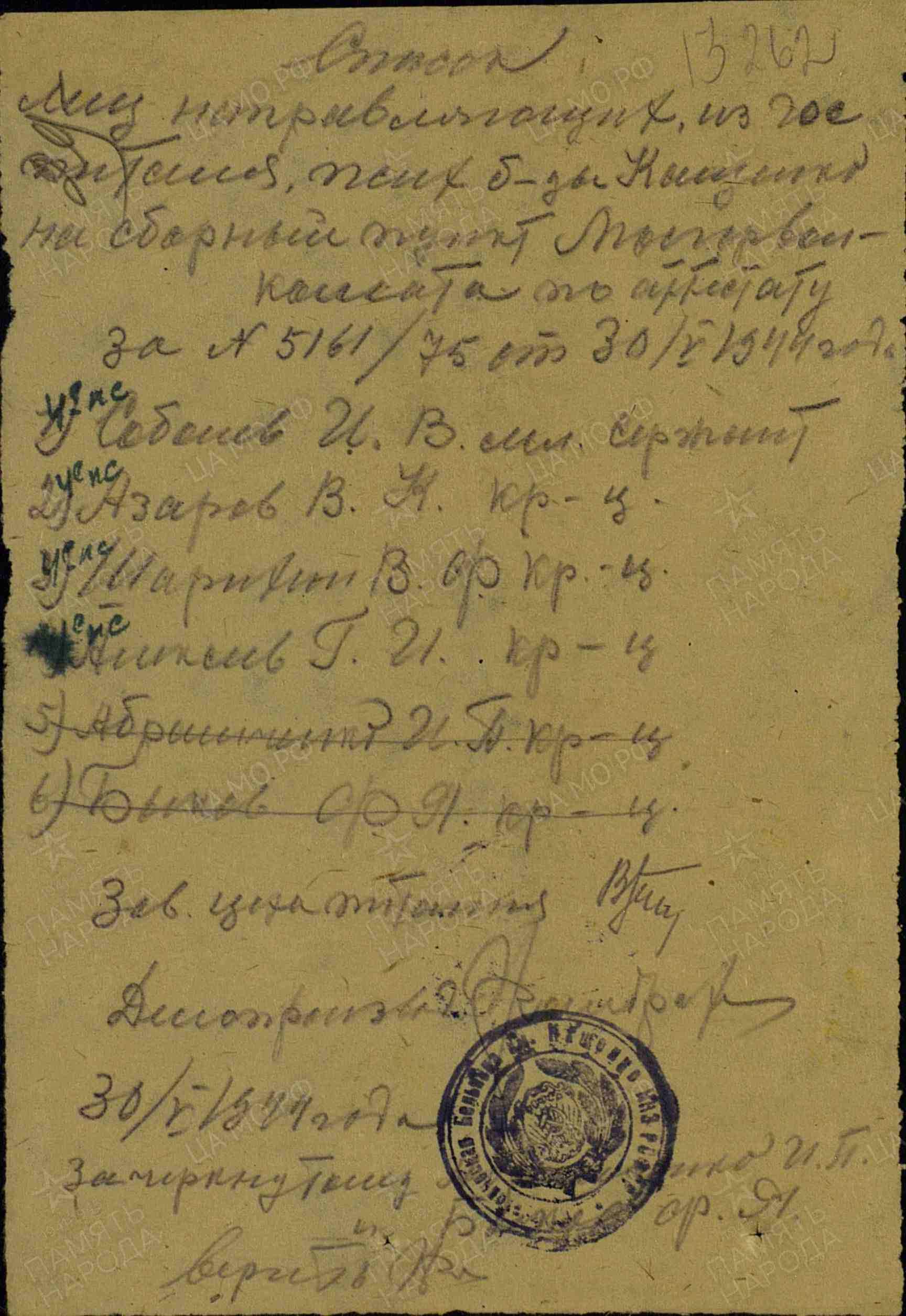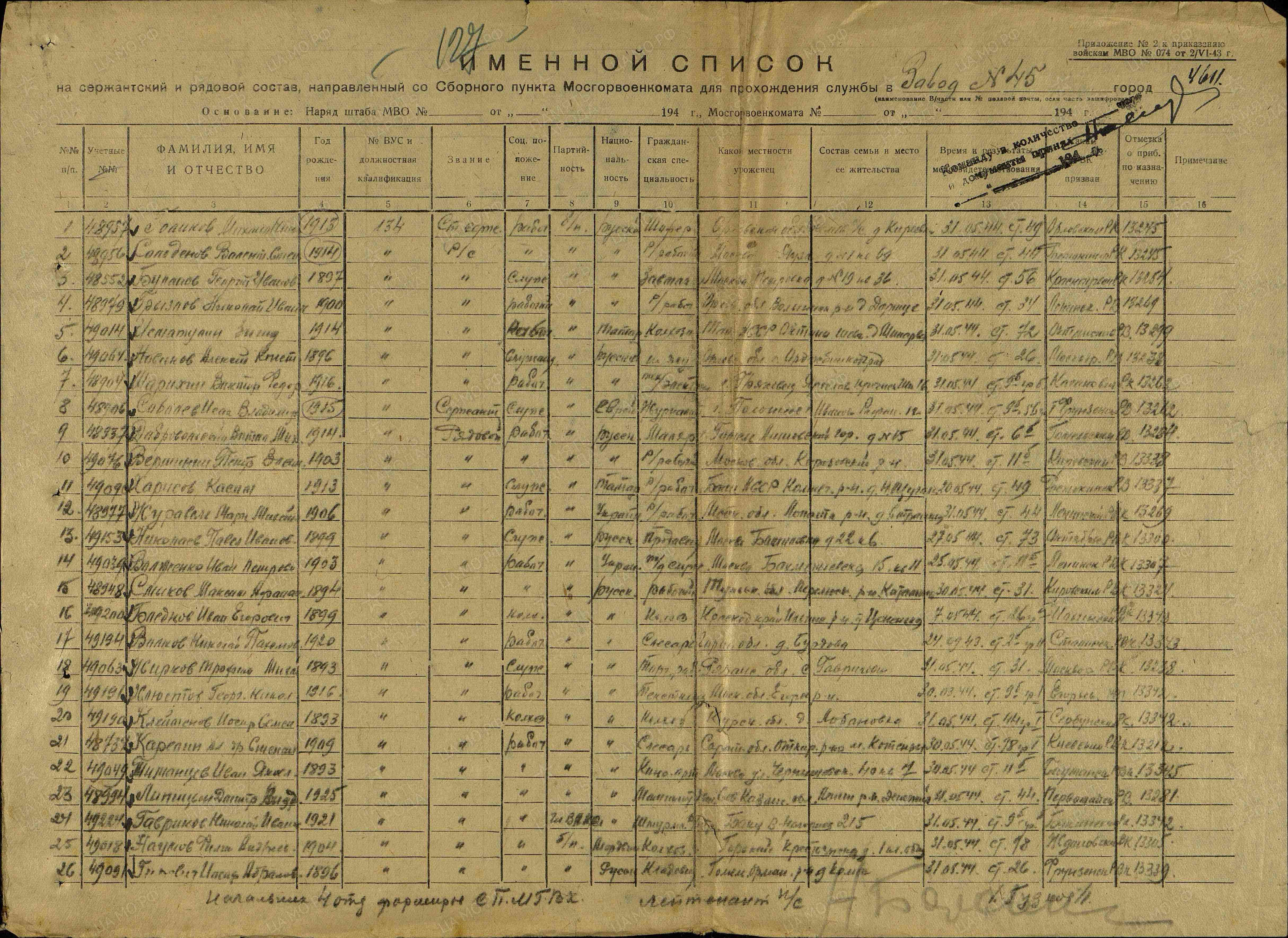 Данные из УПК (учётно - послужной карты, портал "ПАМЯТЬ НАРОДА").