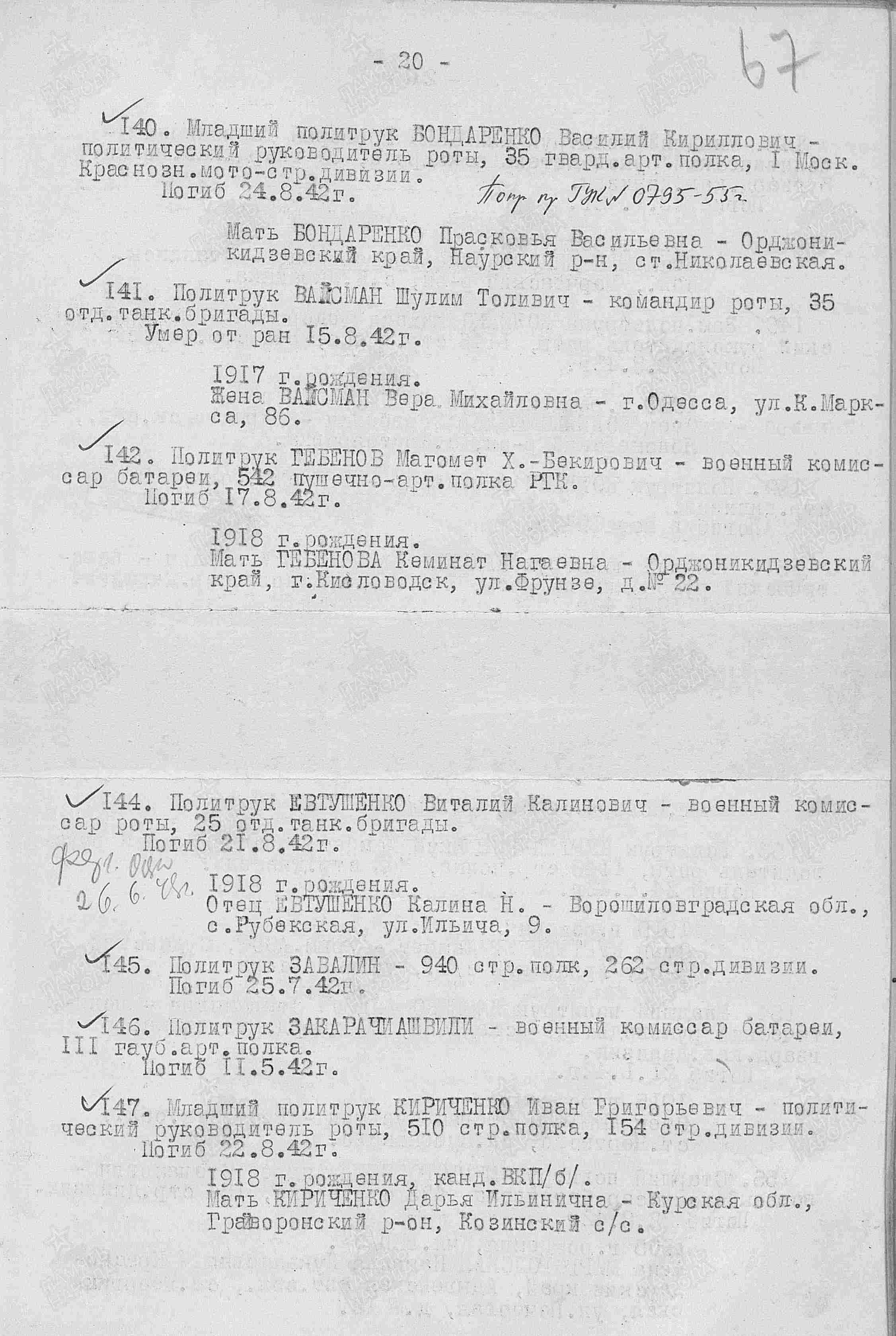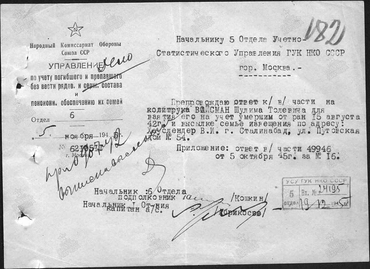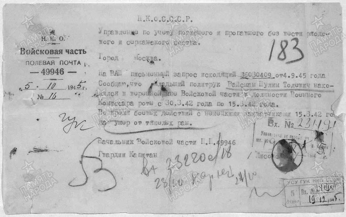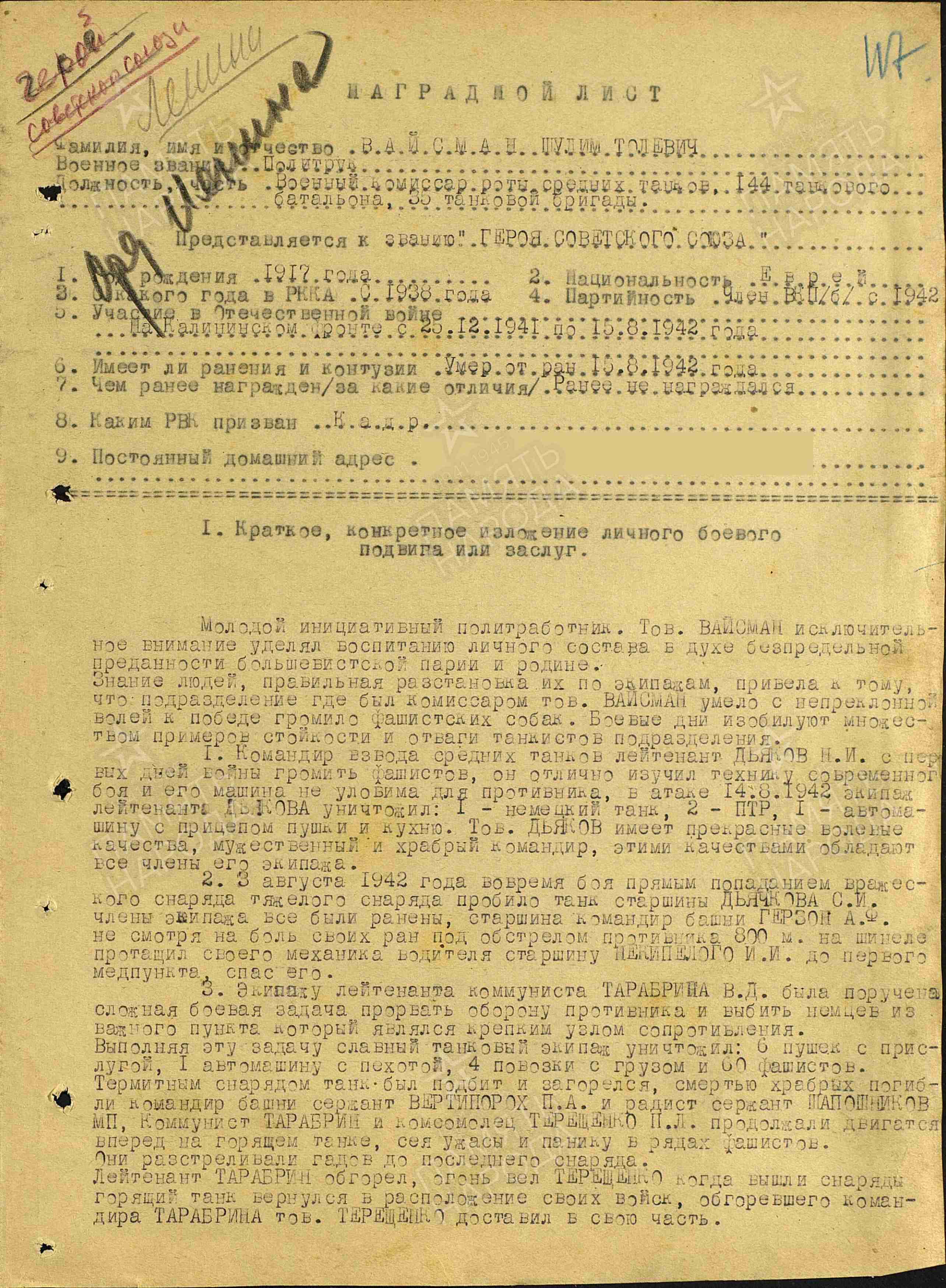 ЛИЧНАЯ СТРАНИЦА на политрука Вайсмана Ш.Т. :